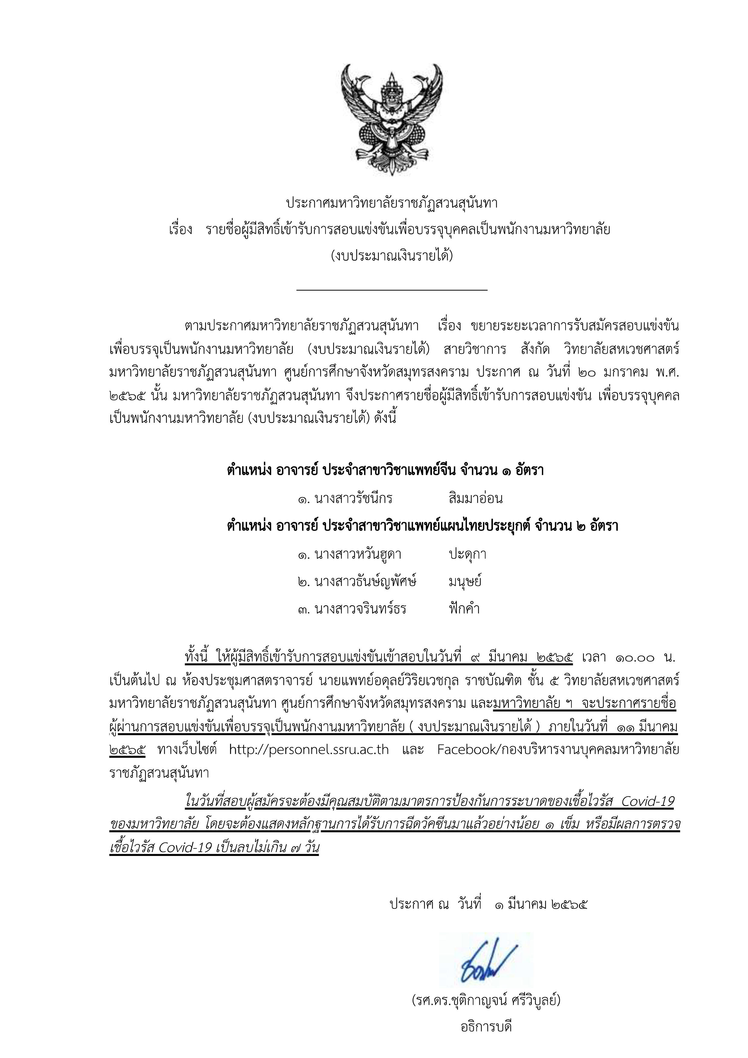 ประกาศรายชื่อผู้มีสิทธิ์สอบแข่งขัน อาจารย์ประจำสาขาวิชาแพทย์แผนจีน 1 อัตรา และอาจารย์ประจำสาขาวิชาแพทย์แผนไทยประยุกต์ 2 อัตรา สังกัดวิทยาลัยสหเวชศาสตร์