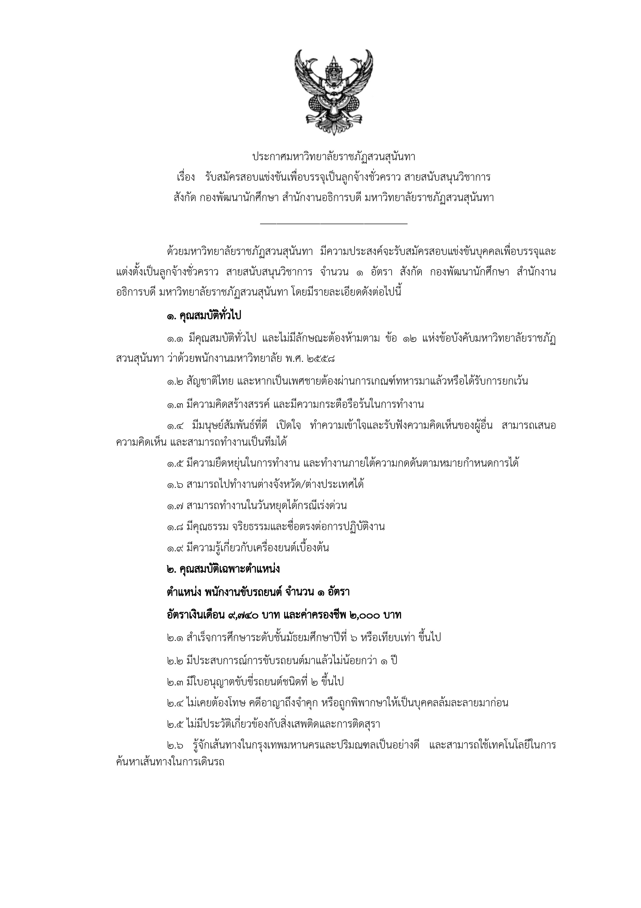ประกาศรับสมัคร ตำแหน่ง พนักงานขับรถยนต์ 1 อัตรา ตั้งแต่วันที่ 15 ส.ค. - 4 ก.ย. 66 สังกัดกองพัฒนานักศึกษา สำนักงานอธิการบดี.pdf