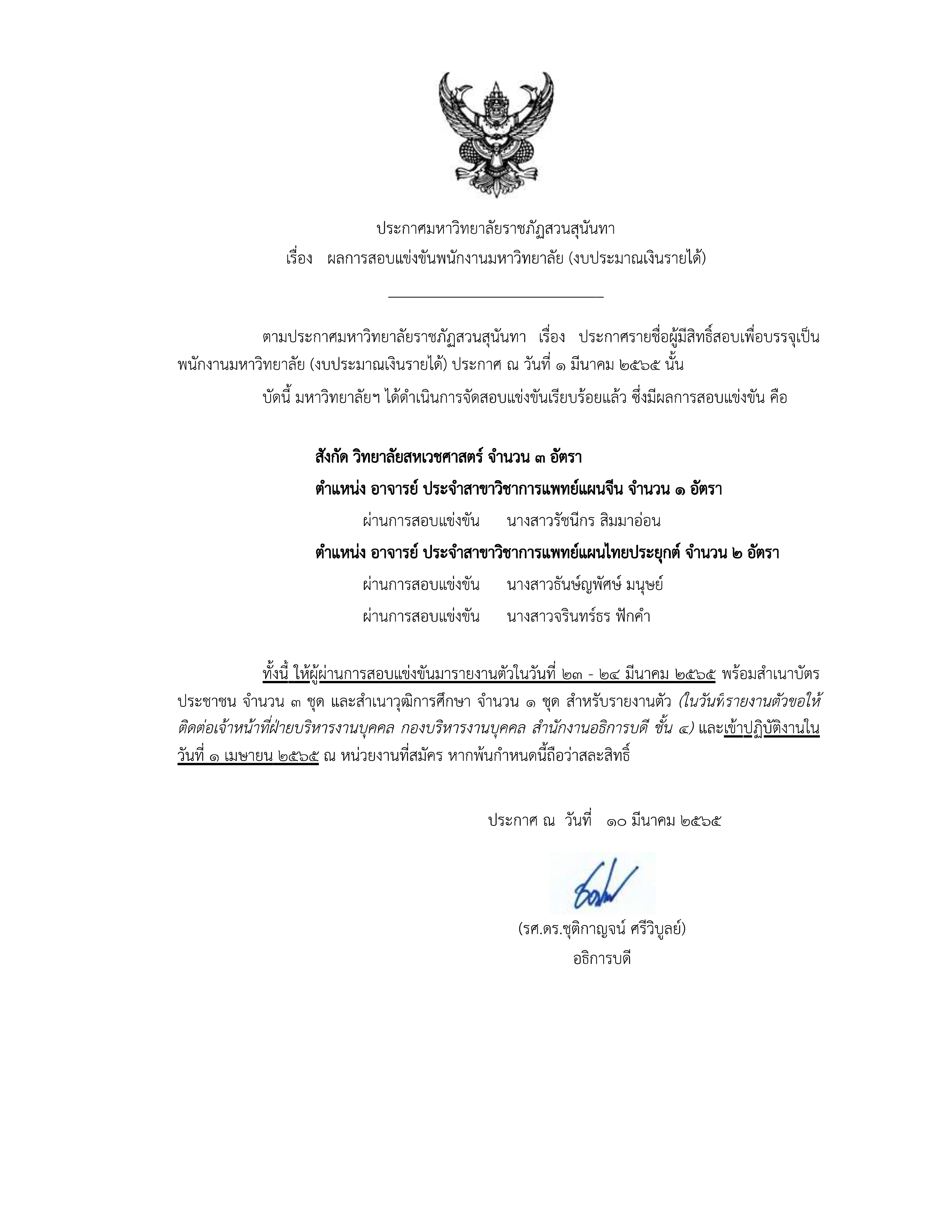 และอาจารย์ประจำสาขาวิชาแพทย์แผนไทยประยุกต์