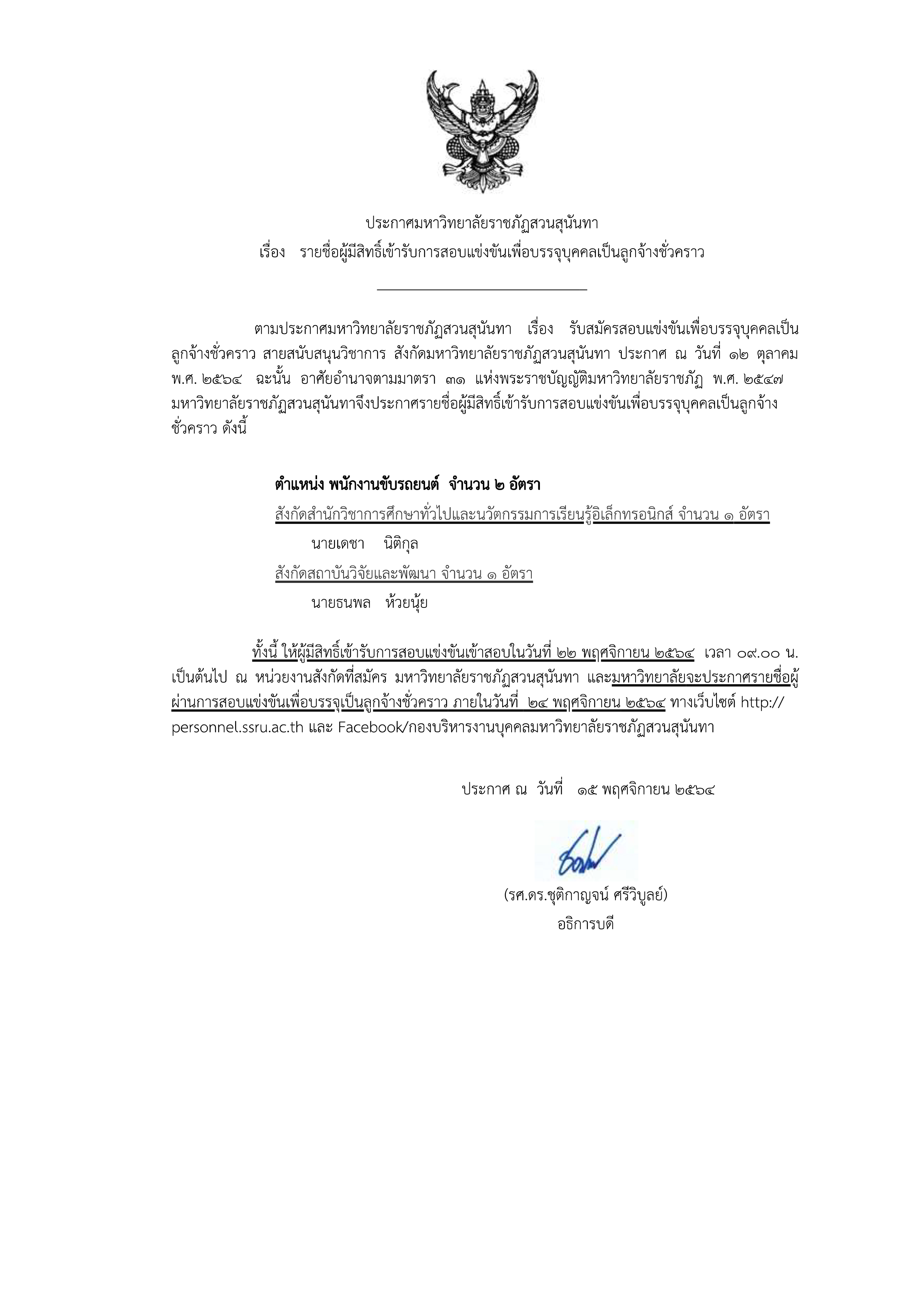 ประกาศรายชื่อผู้มีสิทธิ์สอบ
