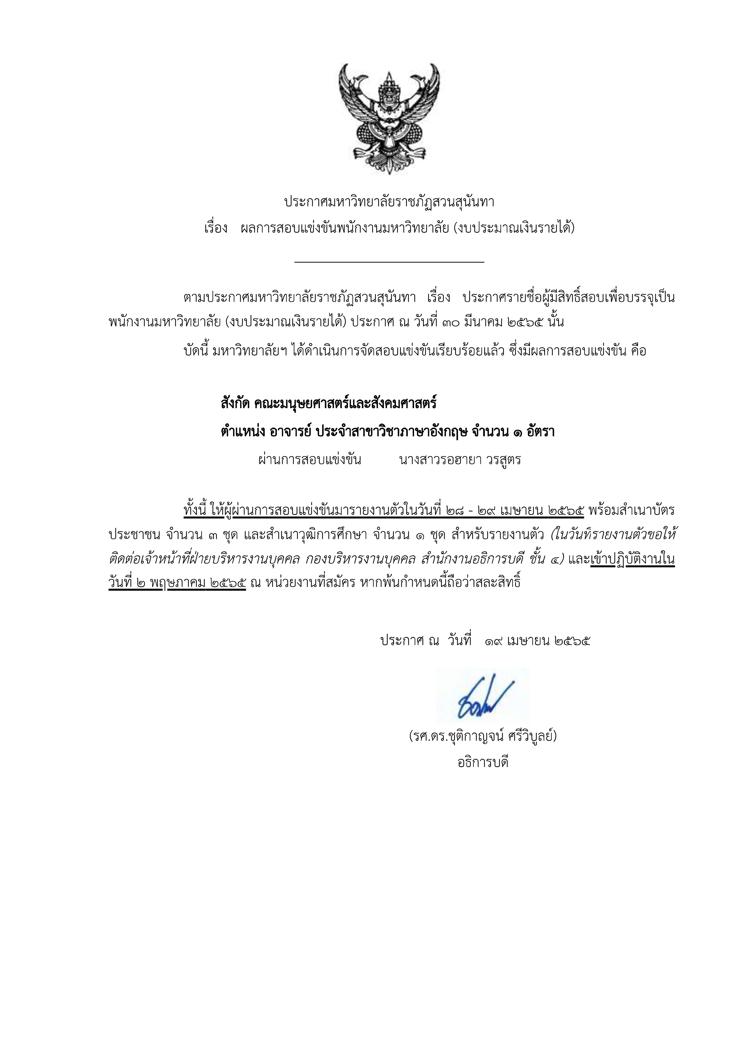 ประกาศผลการรับสมัคร อาจารย์ประจำสาขาวิชาภาษาอังกฤษ 1 อัตรา สังกัดคณะมนุษยศาสตร์และสังคมศาสตร์.pdf