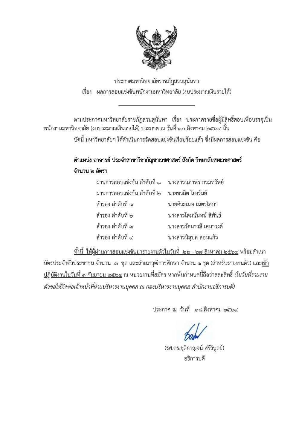 ประกาศผลการรับสมัคร อาจารย์ประจำสาขาวิชากัญชาเวชศาสตร์ 1 อัตรา สังกัดวิทยาลัยสหเวชศาสตร์.pdf
