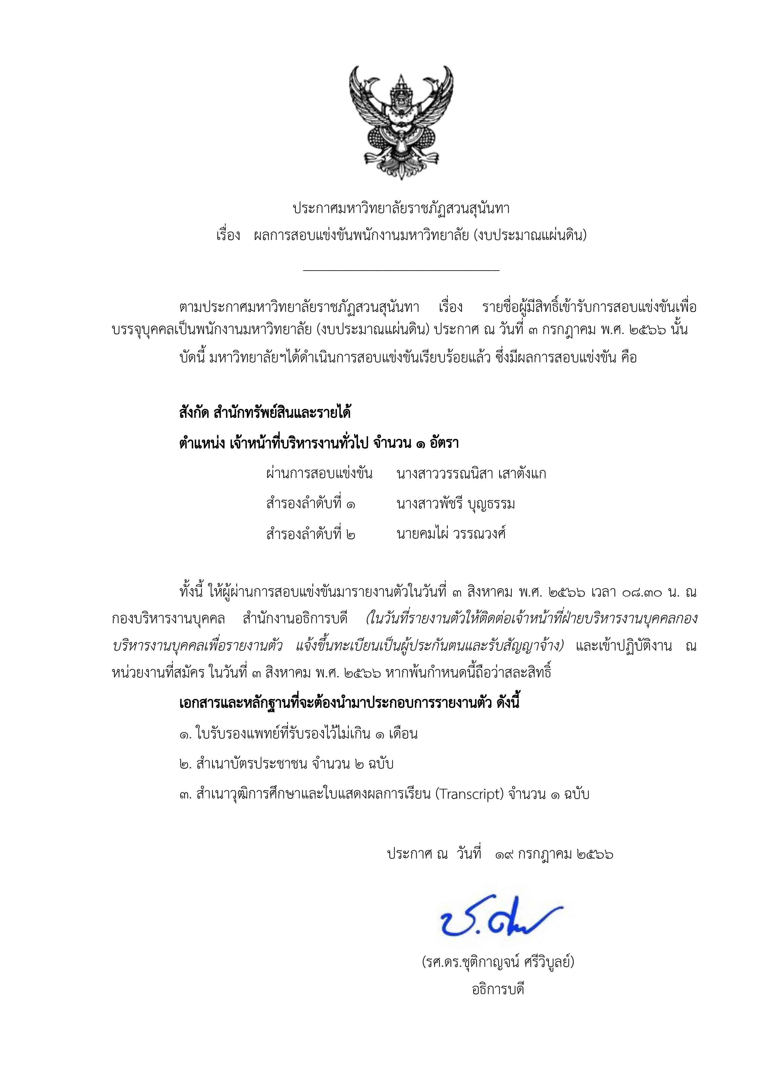 ประกาศผลการสอบแข่งขันเพื่อบรรจุเป็นพนักงานมหาวิทยาลัย(งบประมาณแผ่นดิน)