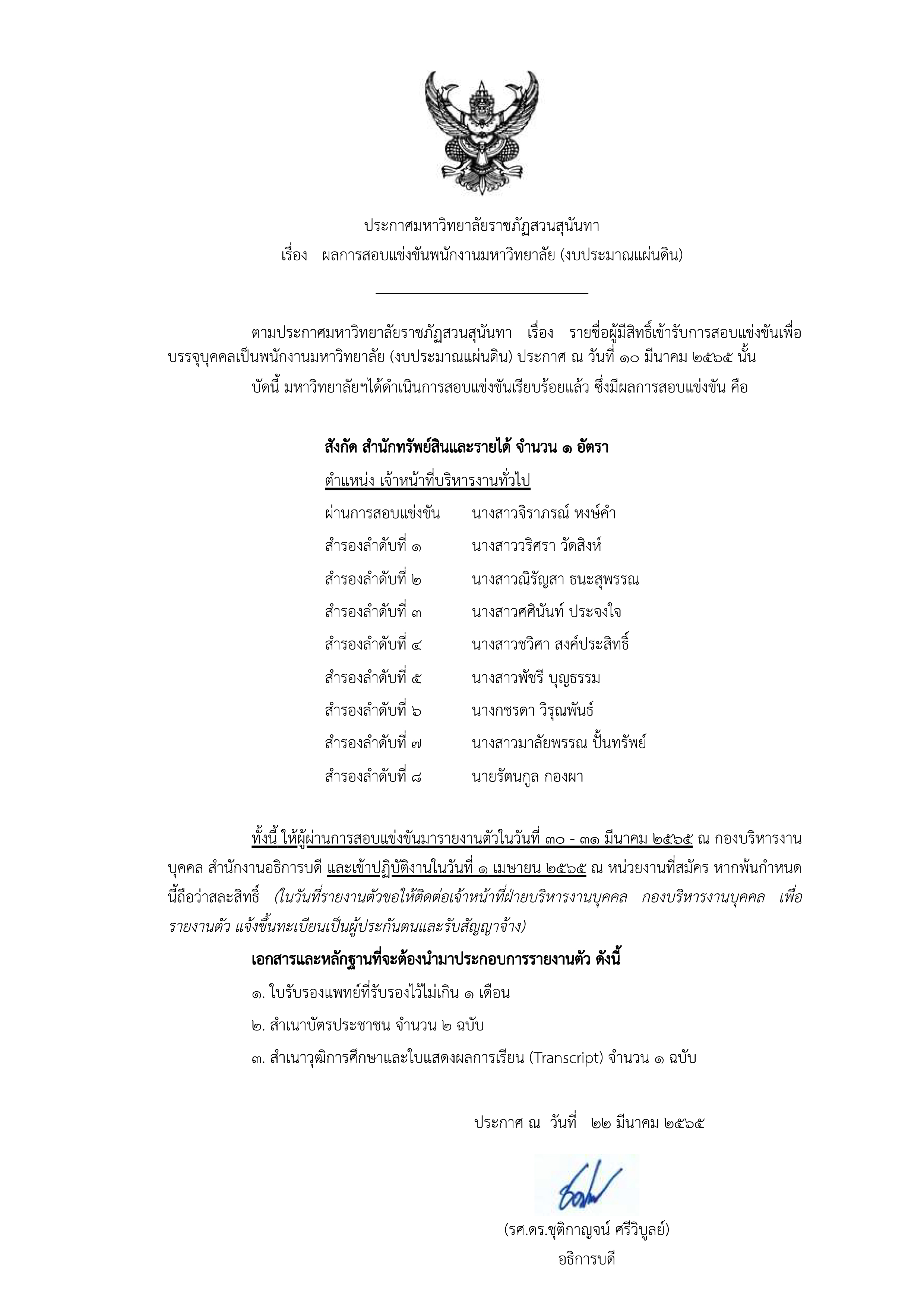 ประกาศผลการสอบแข่งขันเพื่อบรรจุเป็นพนักงานมหาวิทยาลัย(เงินงบประมาณแผ่นดิน)