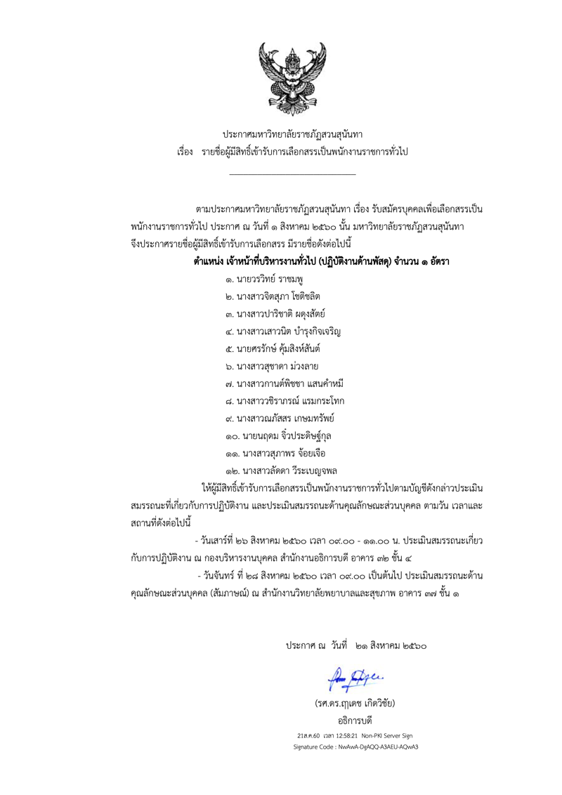 Download ประกาศรายชื่อผู้มีสิทธิ์สอบแข่งขัน พนักงานราชการ ตำแหน่งเจ้าหน้าที่บริหารงานทั่วไป (ปฏิบัติงานด้านพัสดุ).pdf
