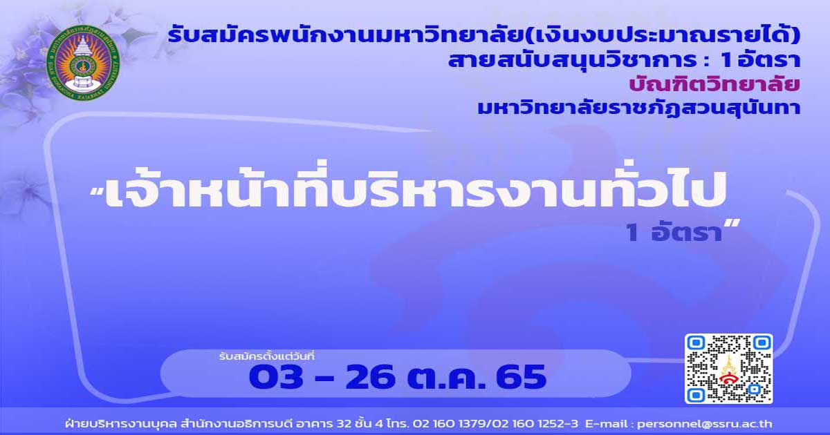 ประกาศรับสมัคร เจ้าหน้าที่บริหารงานทั่วไป 1 อัตรา ตั้งแต่วันที่ 3 - 26 ต.ค.65 สังกัดบัณฑิตวิทยาลัย.pdf