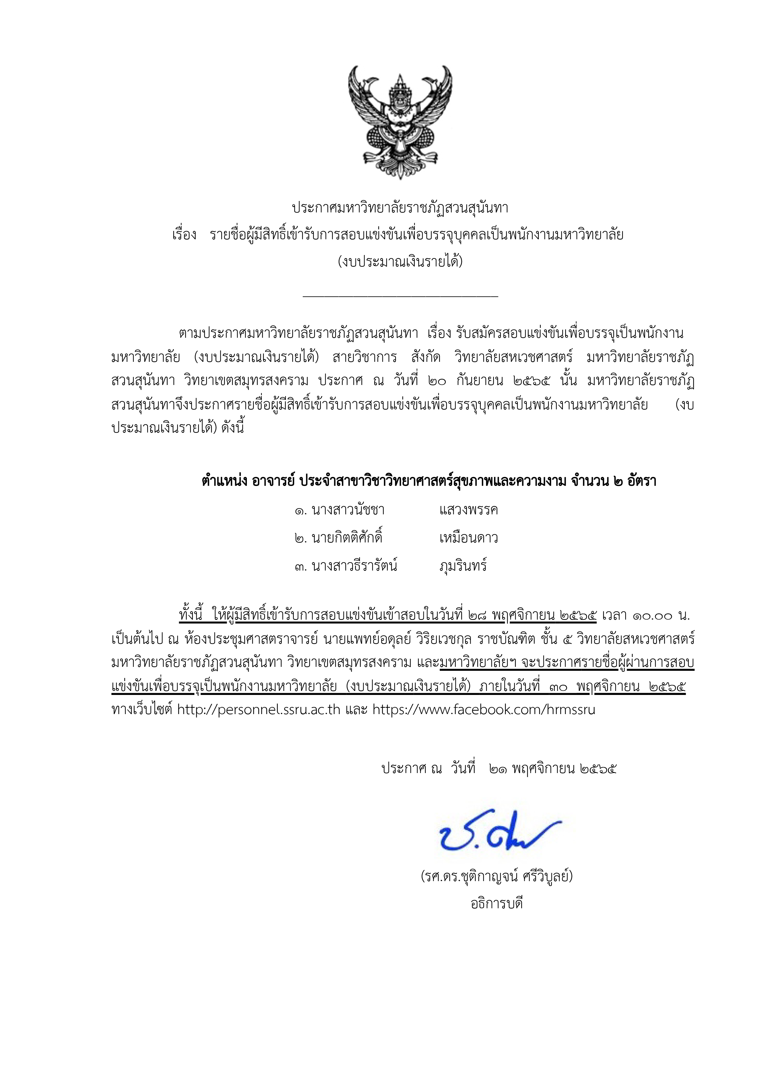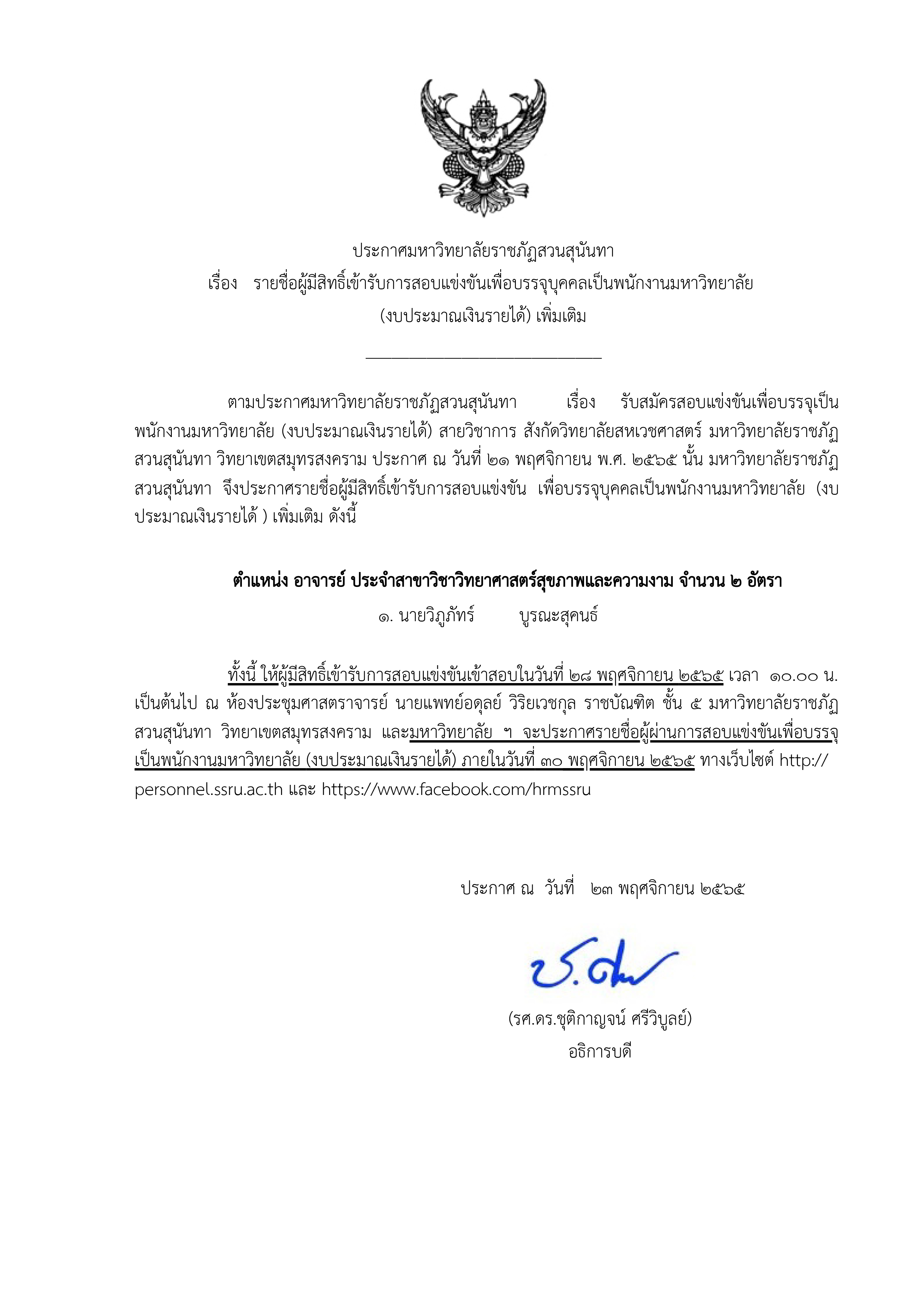 ประกาศรายชื่อผู้มีสิทธิ์สอบแข่งขัน