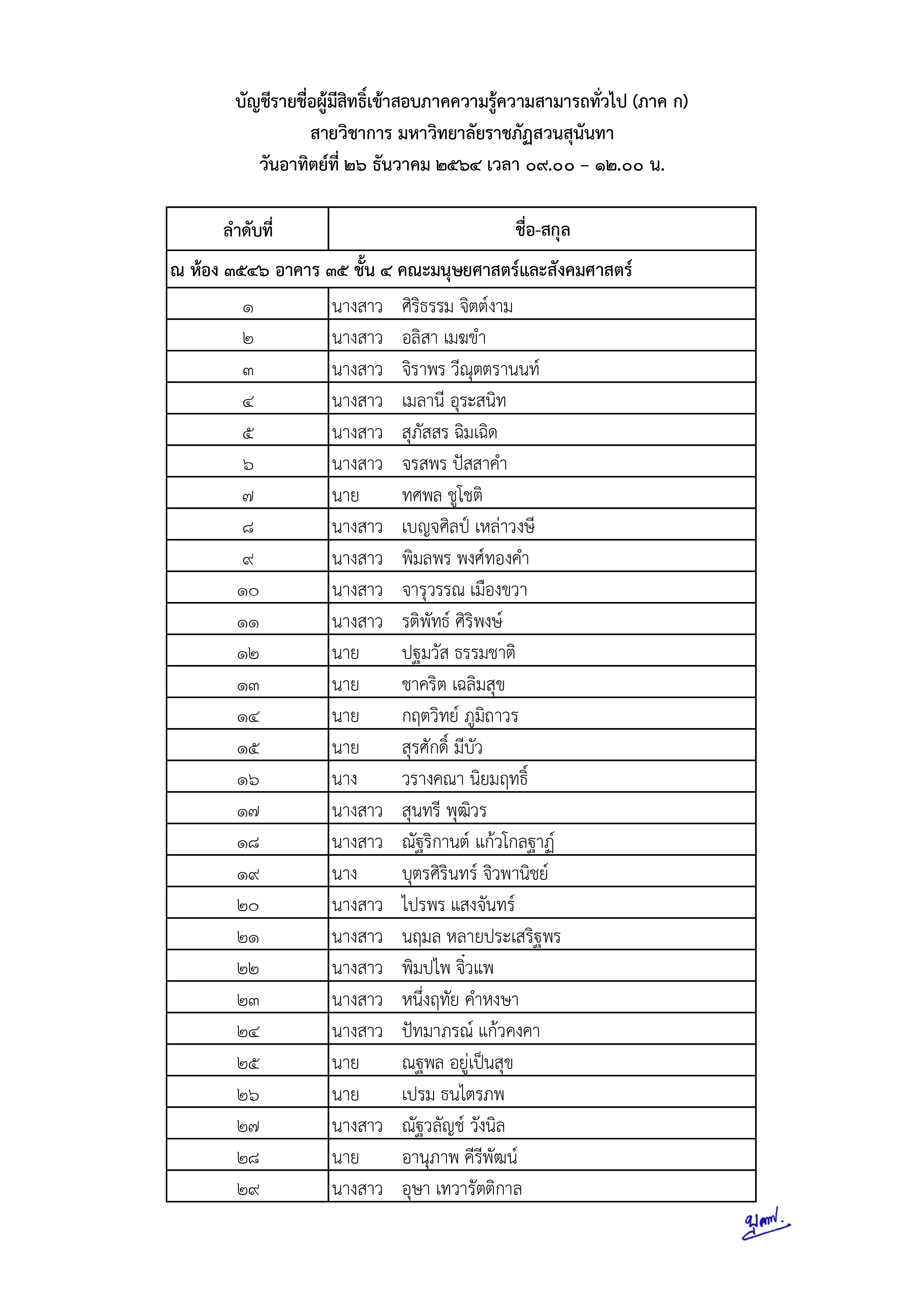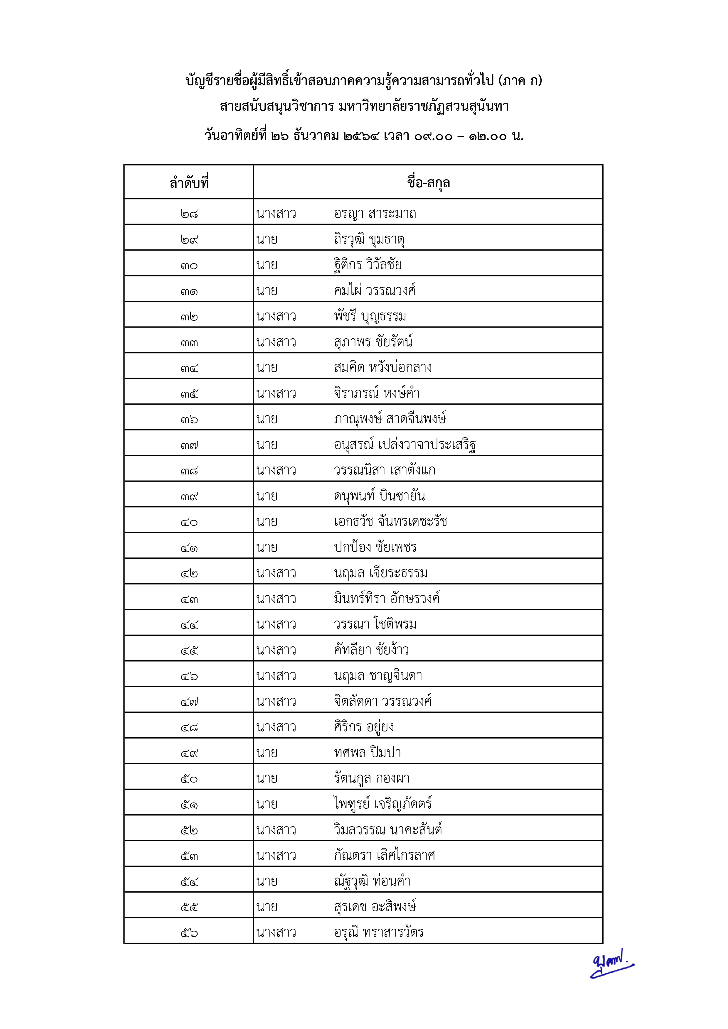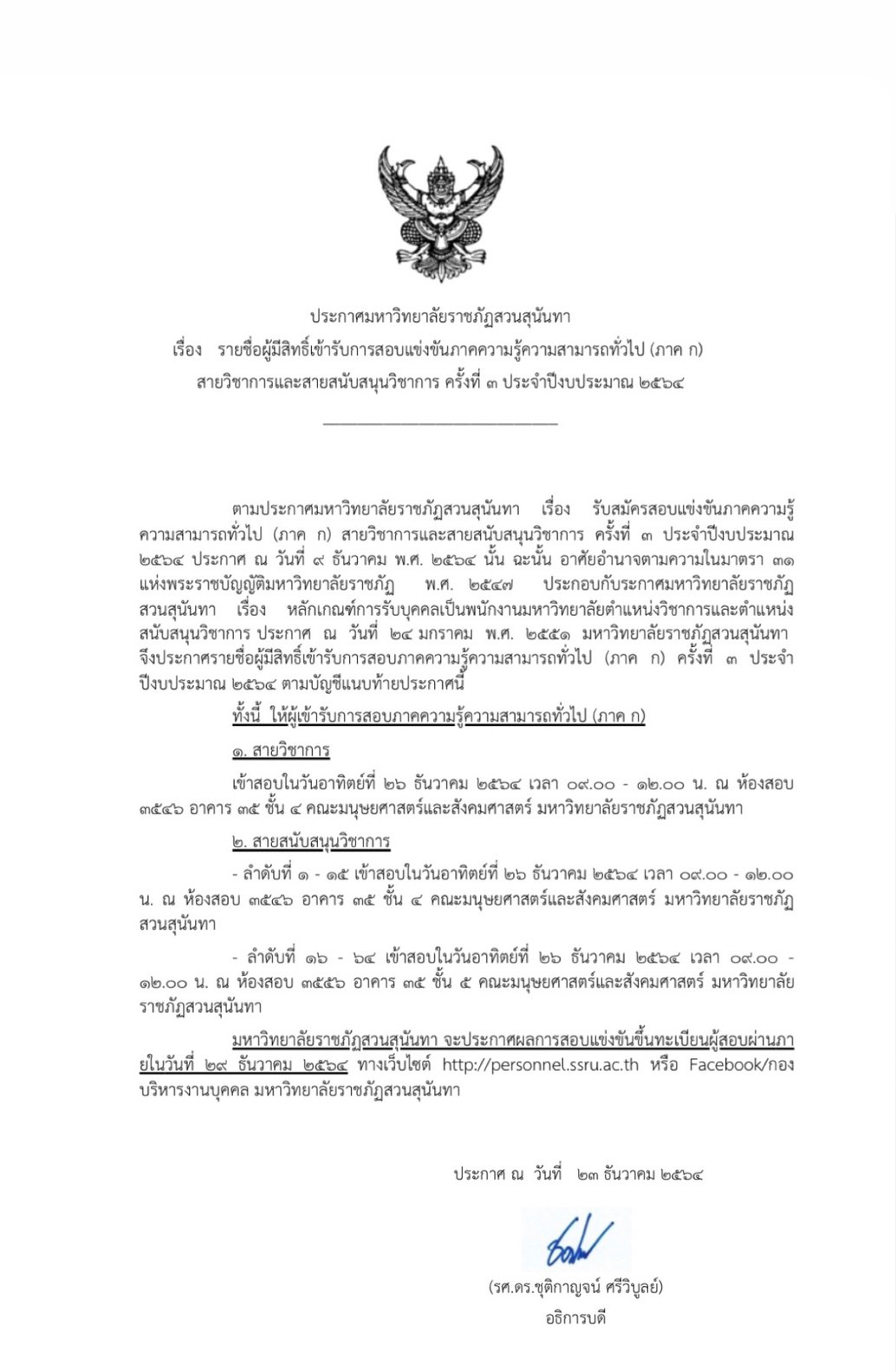ประกาศรายชื่อผู้มีสิทธิ์สอบแข่งขัน ภาคความรู้ความสามารถทั่วไป (ภาค ก) มหาวิทยาลัยราชภัฏสวนสุนันทา ครั้งที่ 3/2564.pdf