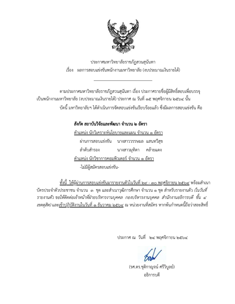 ประกาศผลการรับสมัคร นักวิเคราะห์นโยบายและแผน 1 อัตรา และนักวิชาการคอมพิวเตอร์ 1 อัตรา สังกัดสถาบันวิจัยและพัฒนา.pdf