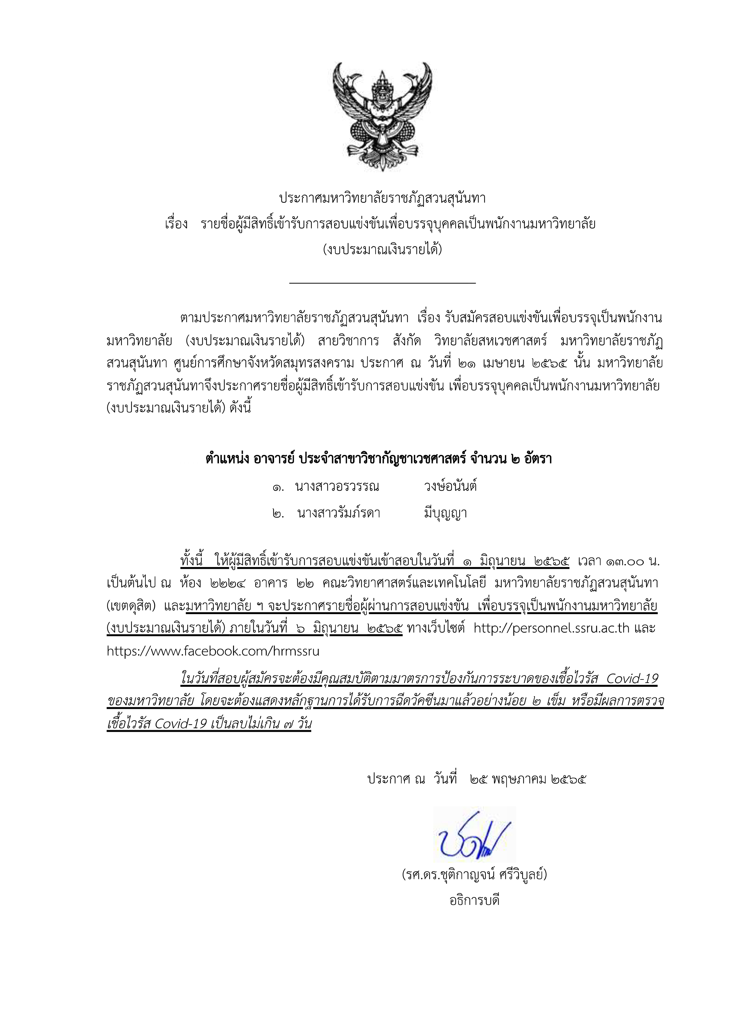 ประกาศรายชื่อผู้มีสิทธิสอบแข่งแขัน ตำแหน่งอาจารย์ประจำสาขาวิชากัญชาเวชศาสตร์ 2 อัตรา สังกัดวิทยาลัยสหเวชศาสตร์.pdf