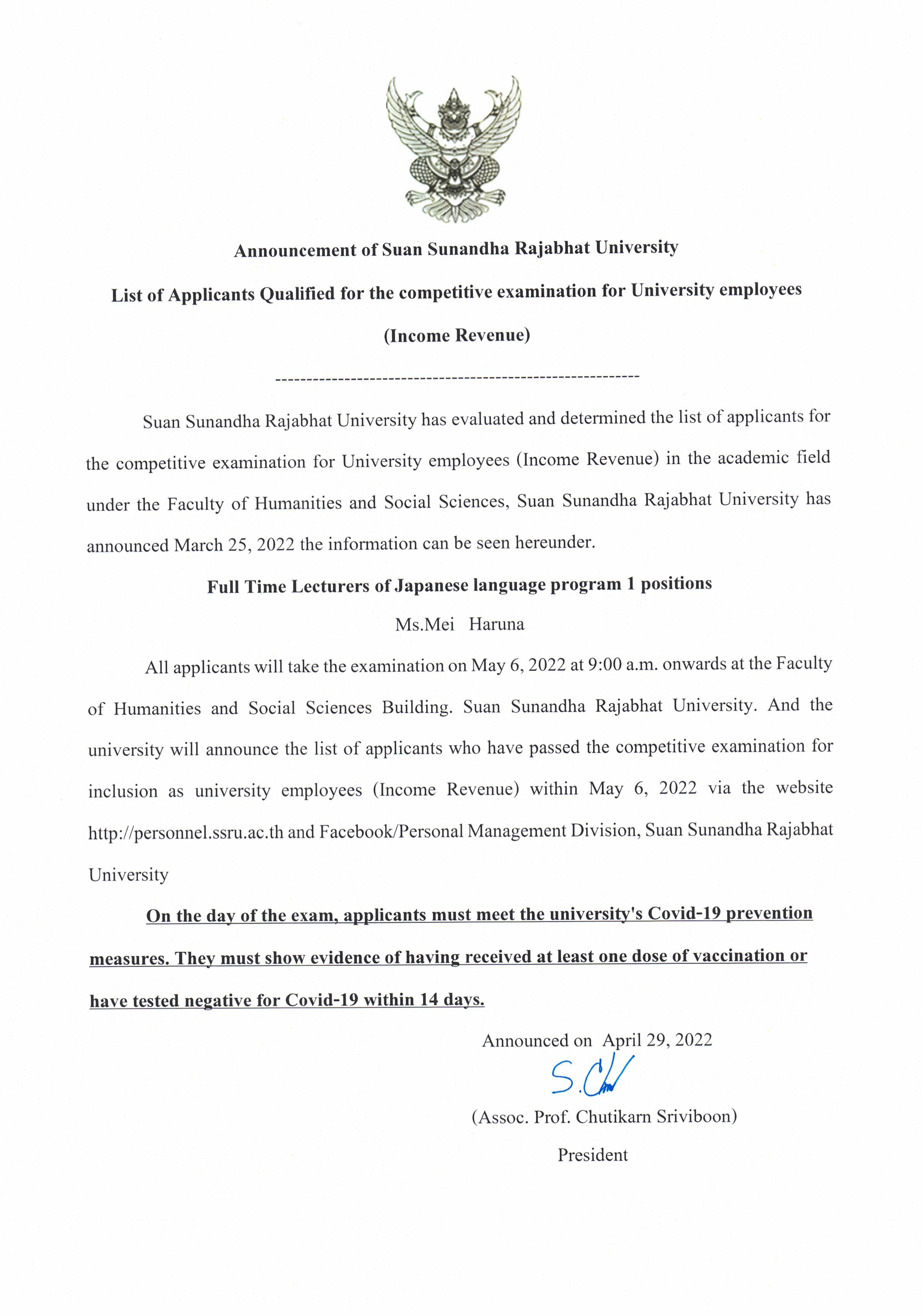 List of Applicants Qualified for the