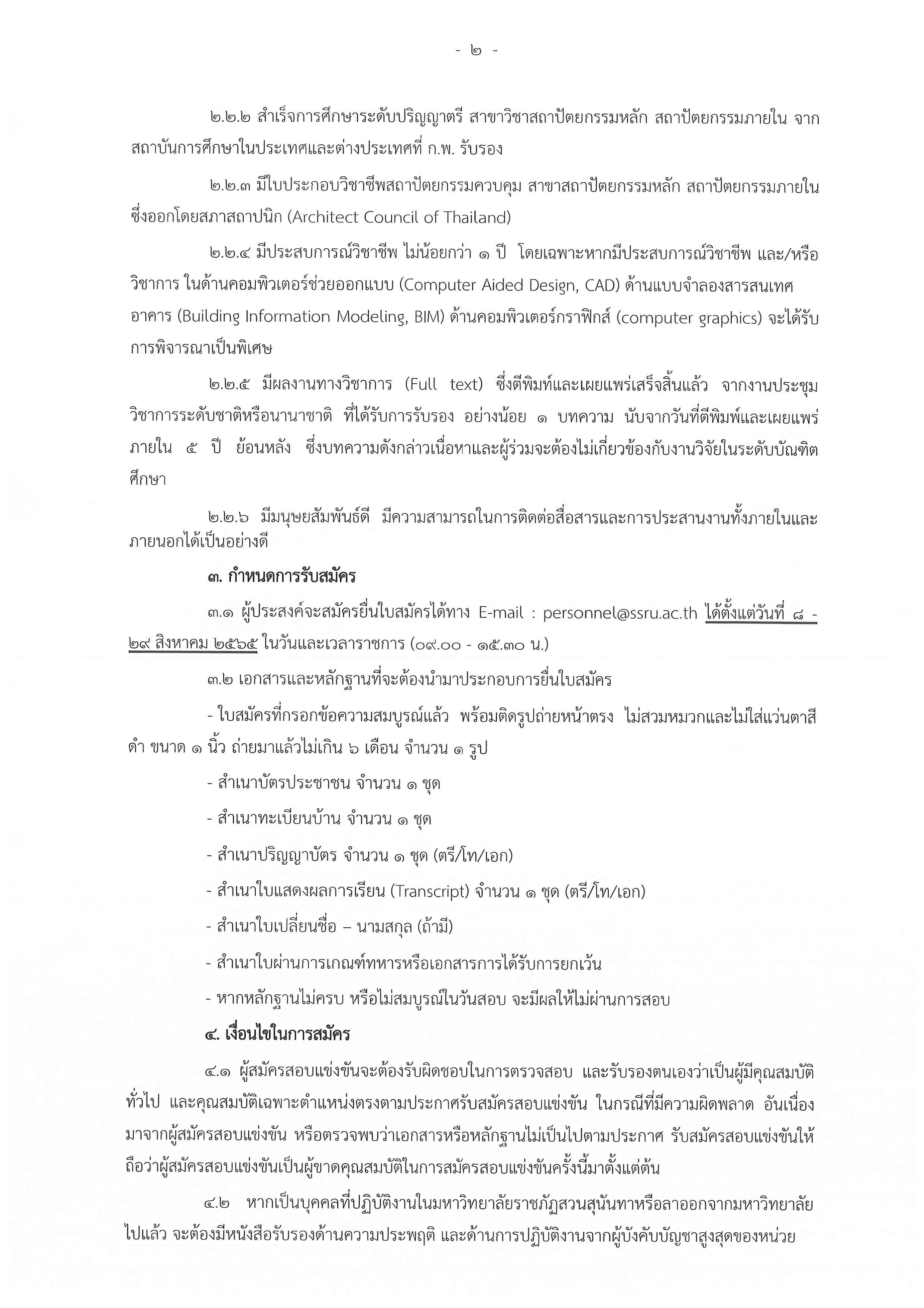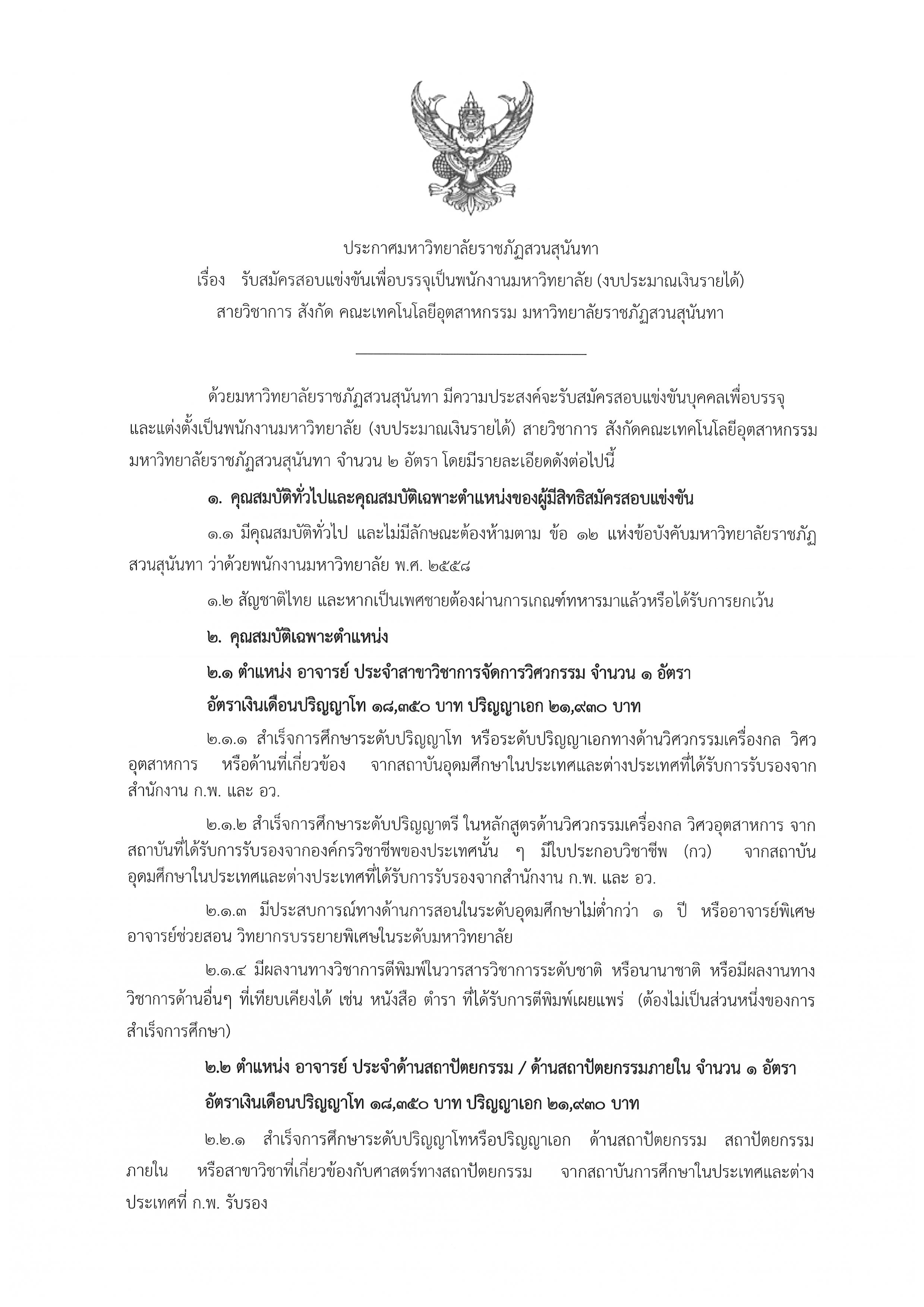 ประกาศรับสมัคร อาจารย์ประจำสาขาวิชาการจัดการวิศวกรรม 1 อัตรา  และอาจารย์ประจำด้านสถาปัตยกรรม / ด้านสถาปัตยกรรมภายใน 1 อัตรา ตั้งแต่วันที่ 8 - 29 ส.ค.65 สังกัดคณะเทคโนโลยีอุตสาหกรรม.pdf