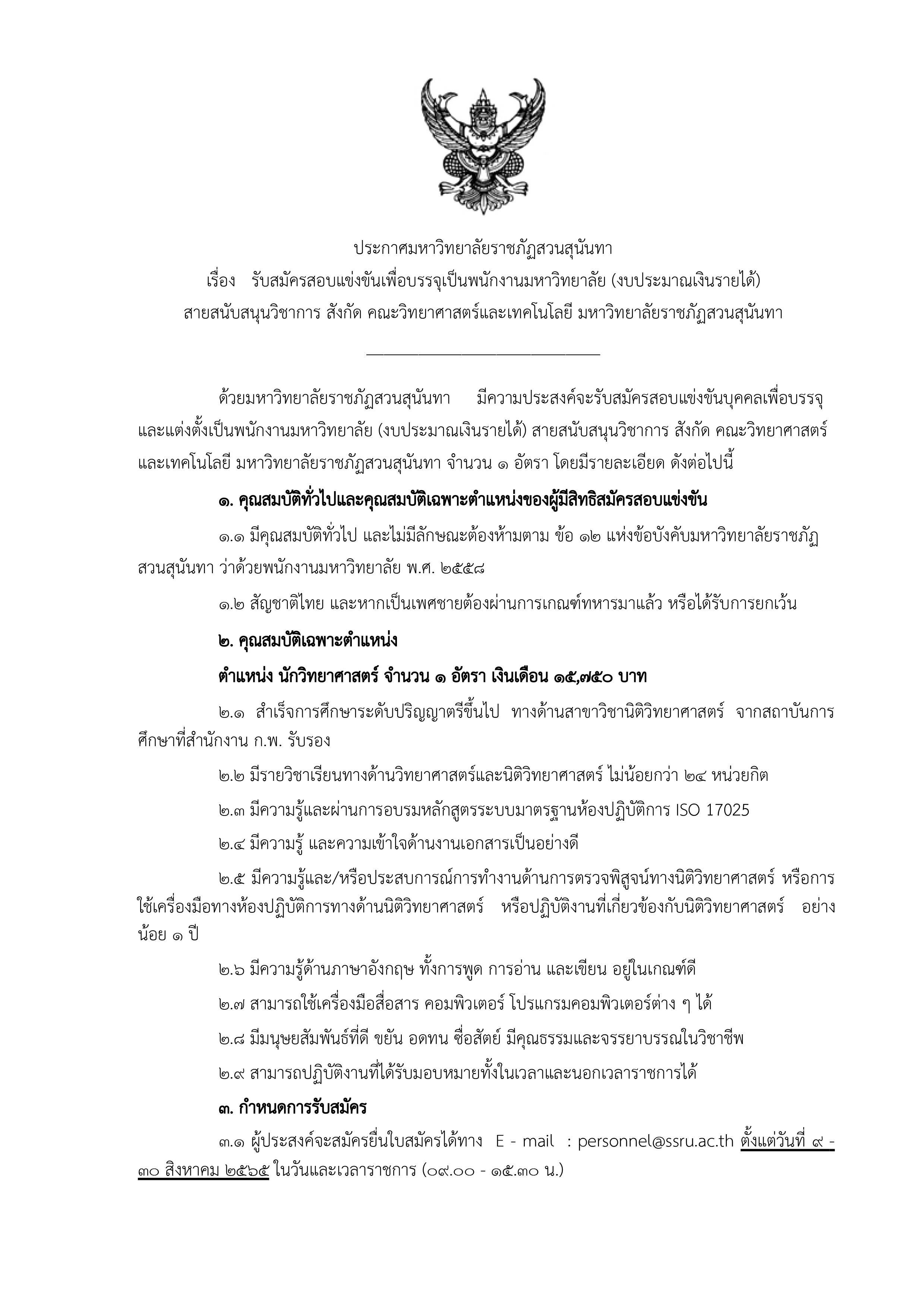 ประกาศรับสมัคร นักวิทยาศาสตร์ 1 อัตรา ตั้งแต่วันที่ 9 - 30 ส.ค. 65 สังกัดคณะวิทยาศาสตร์และเทคโนโลยี.pdf