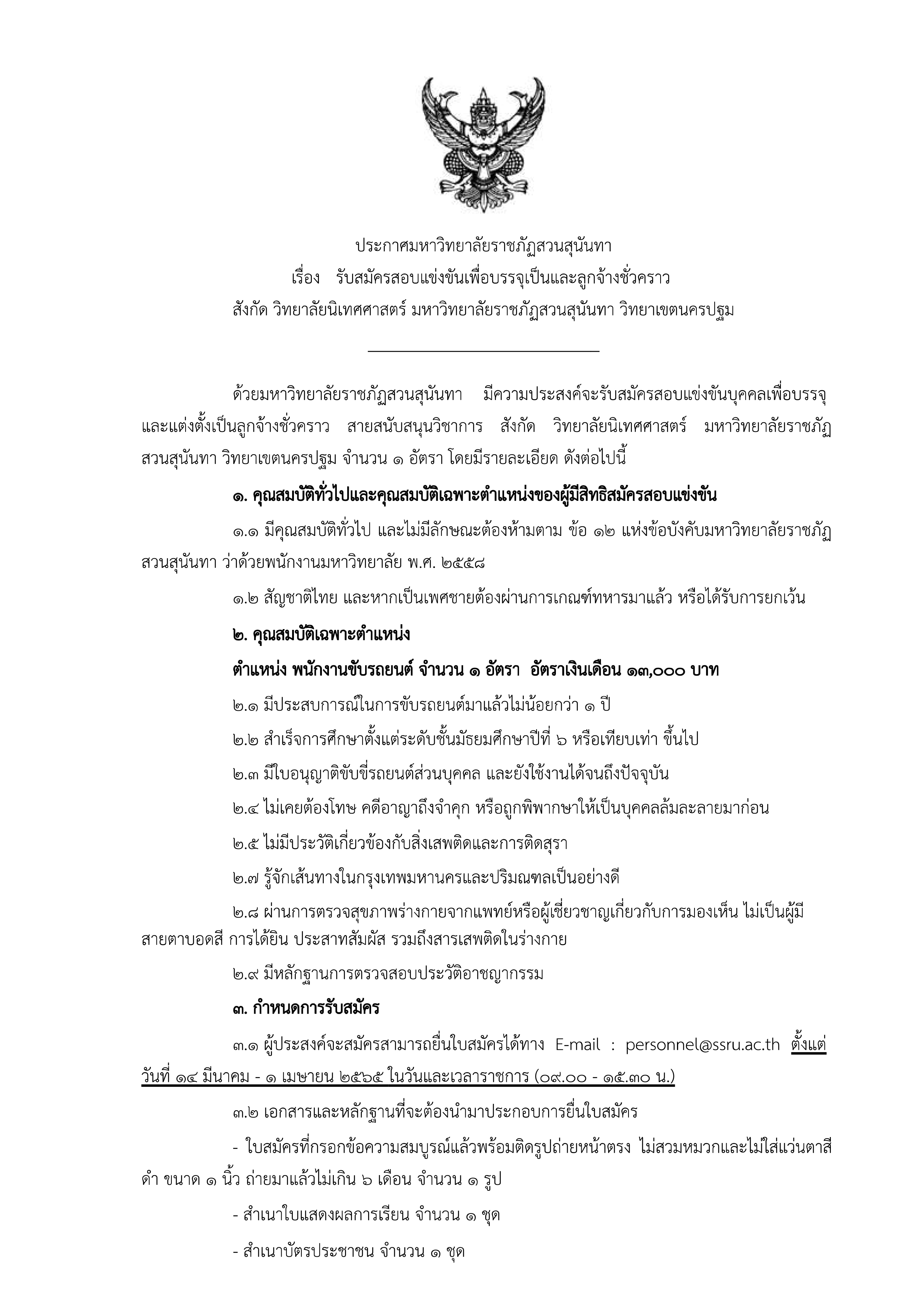 ประกาศรับสมัคร  พนักงานขับรถยนต์  1  อัตรา  ตั้งแต่วันที่ 14 มี.ค. - 1 เม.ย.65  สังกัดวิทยาลัยนิเทศศาสตร์.pdf