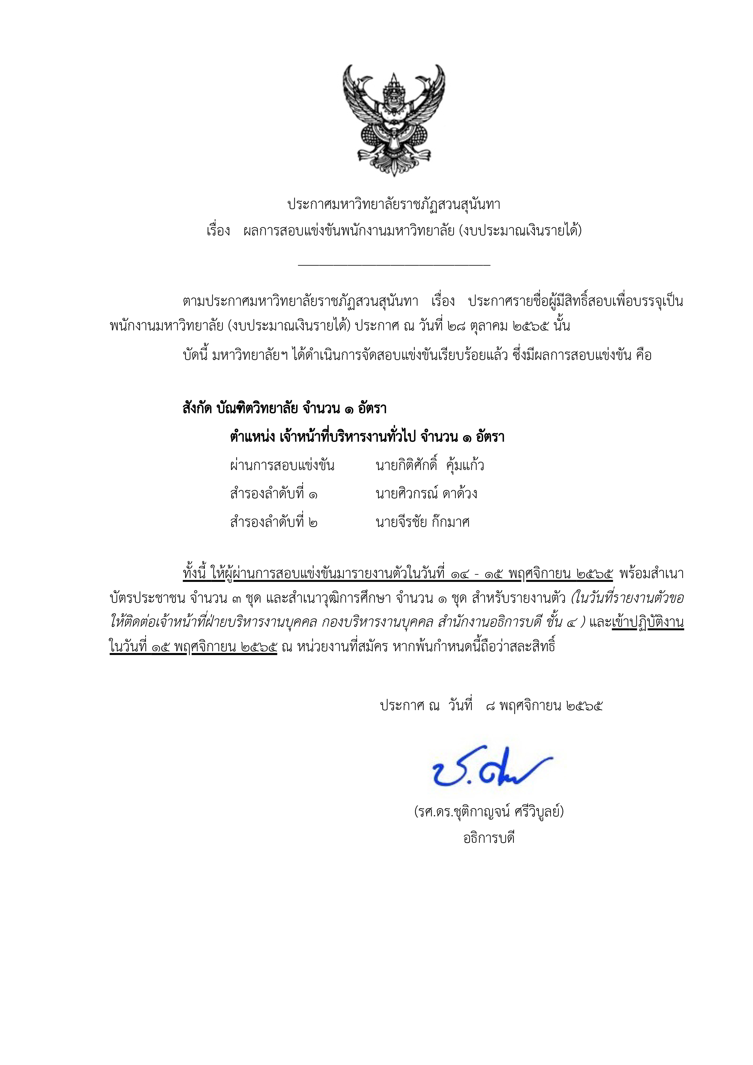 Home > Announcement > results > ประกาศผลการรับสมัคร ตำแหน่ง เจ้าหน้าที่บริหารงานทั่วไป 1 อัตรา สังกัดบัณฑิตวิทยาลัย
