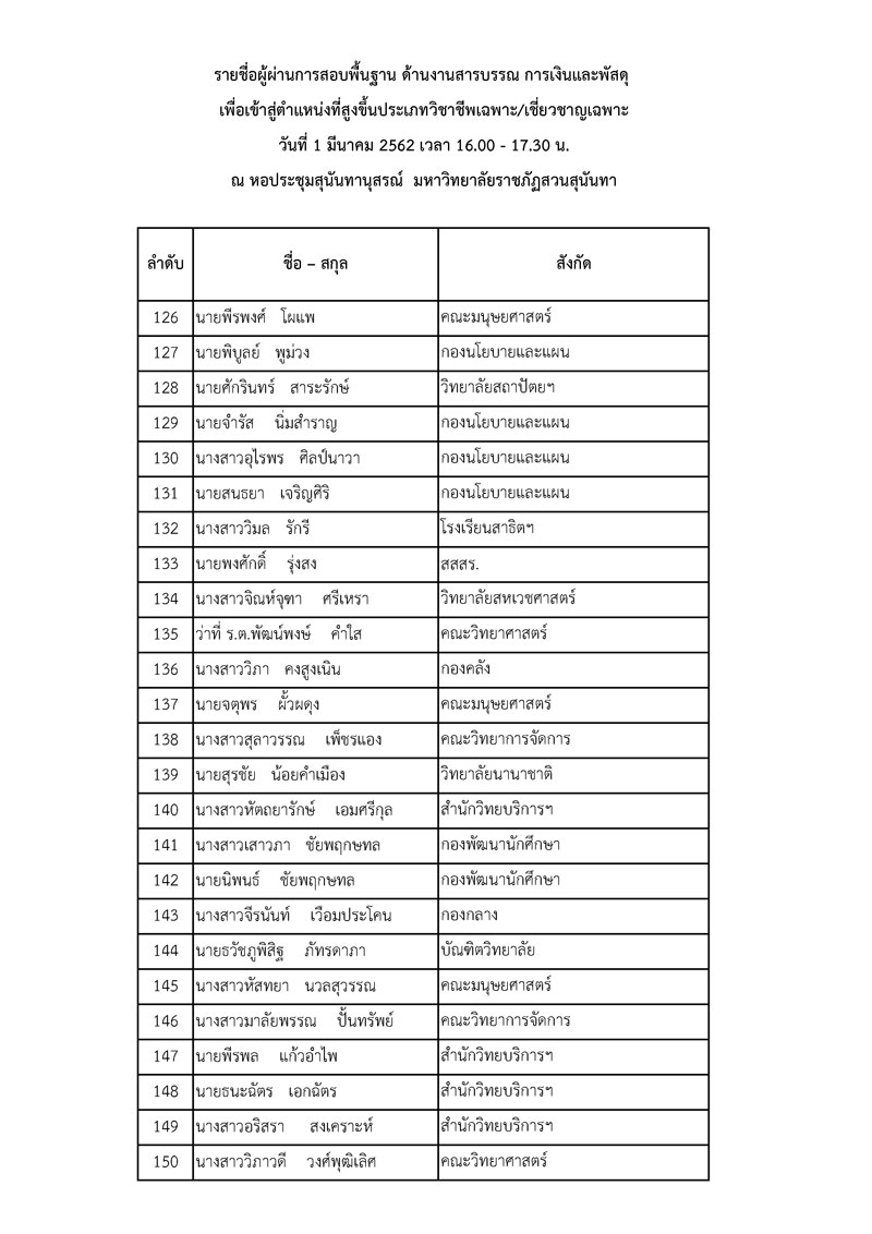 ประกาศรายชื่อผู้ผ่านการสอบวัดความรู้ด้านงานสารบรรณการเงิน