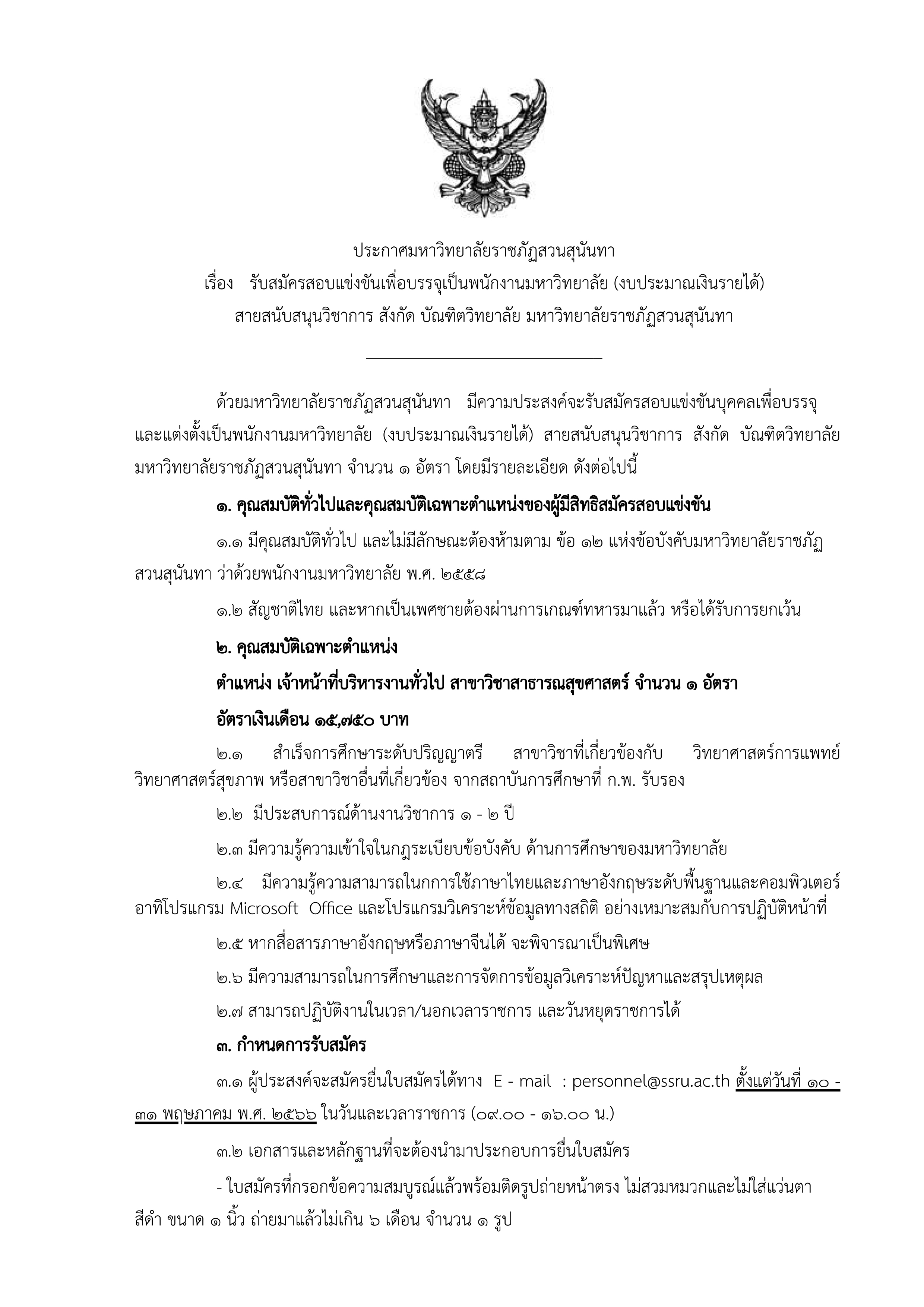 Announcement to recruit : 1
