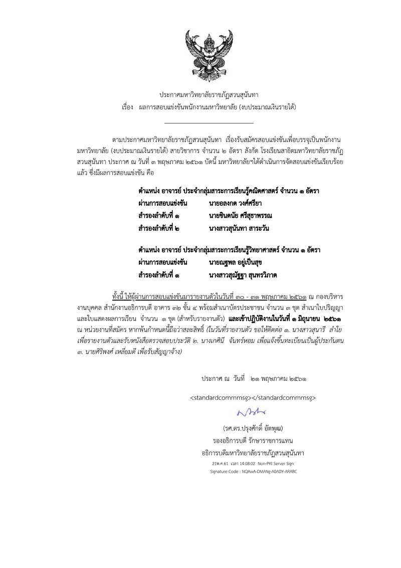 ประกาศผลการรับสมัคร