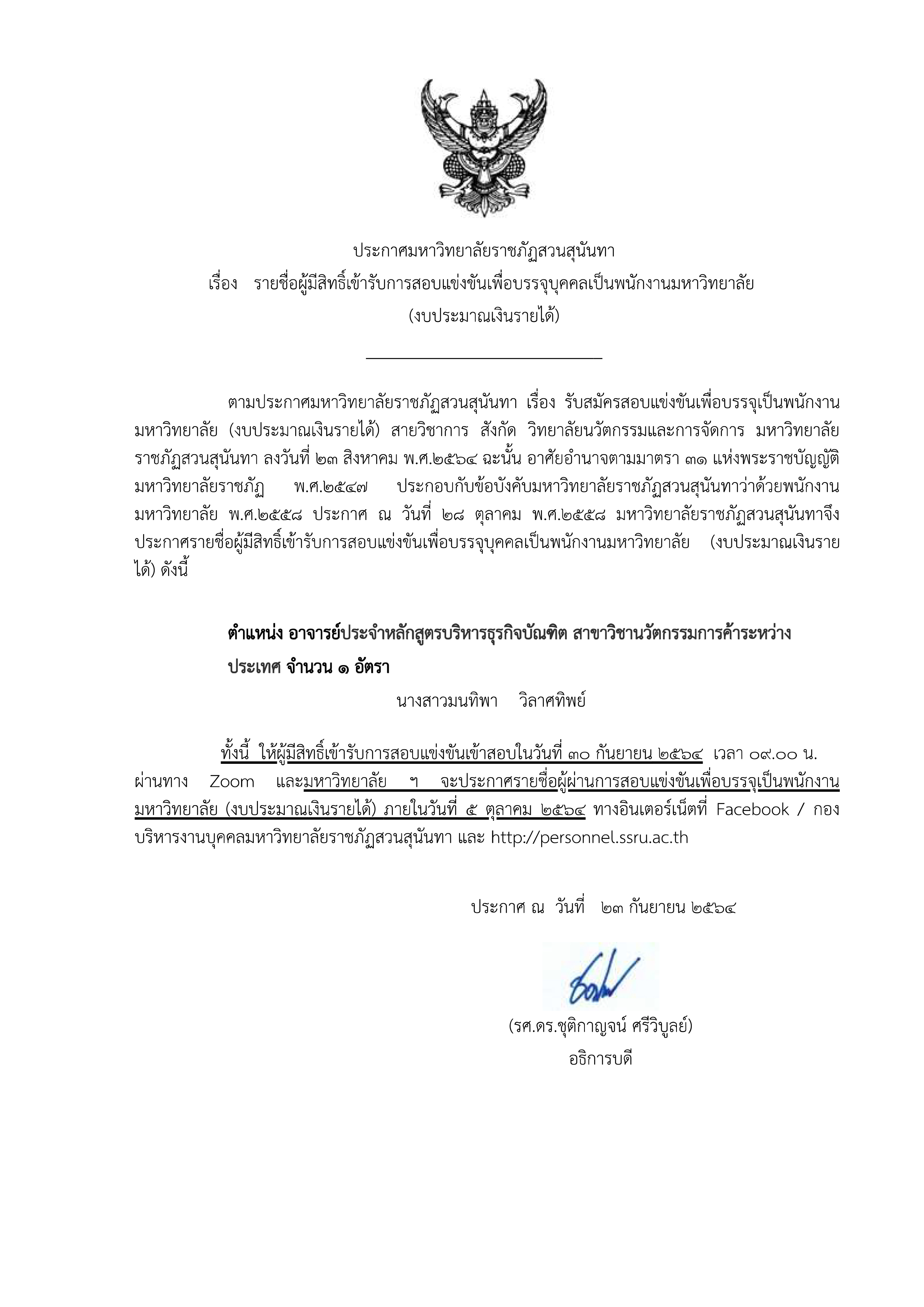 ประกาศรายชื่อผู้มีสิทธิ์สอบแข่งขัน