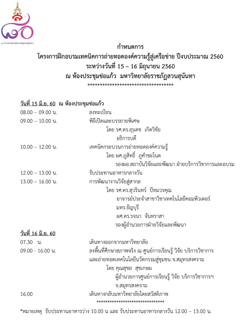 เอกสารประกอบ โครงการฝึกอบรมเทคนิคการถ่ายทอดองค์ความรู้สู่เครือข่าย ปีงบประมาณ 2560