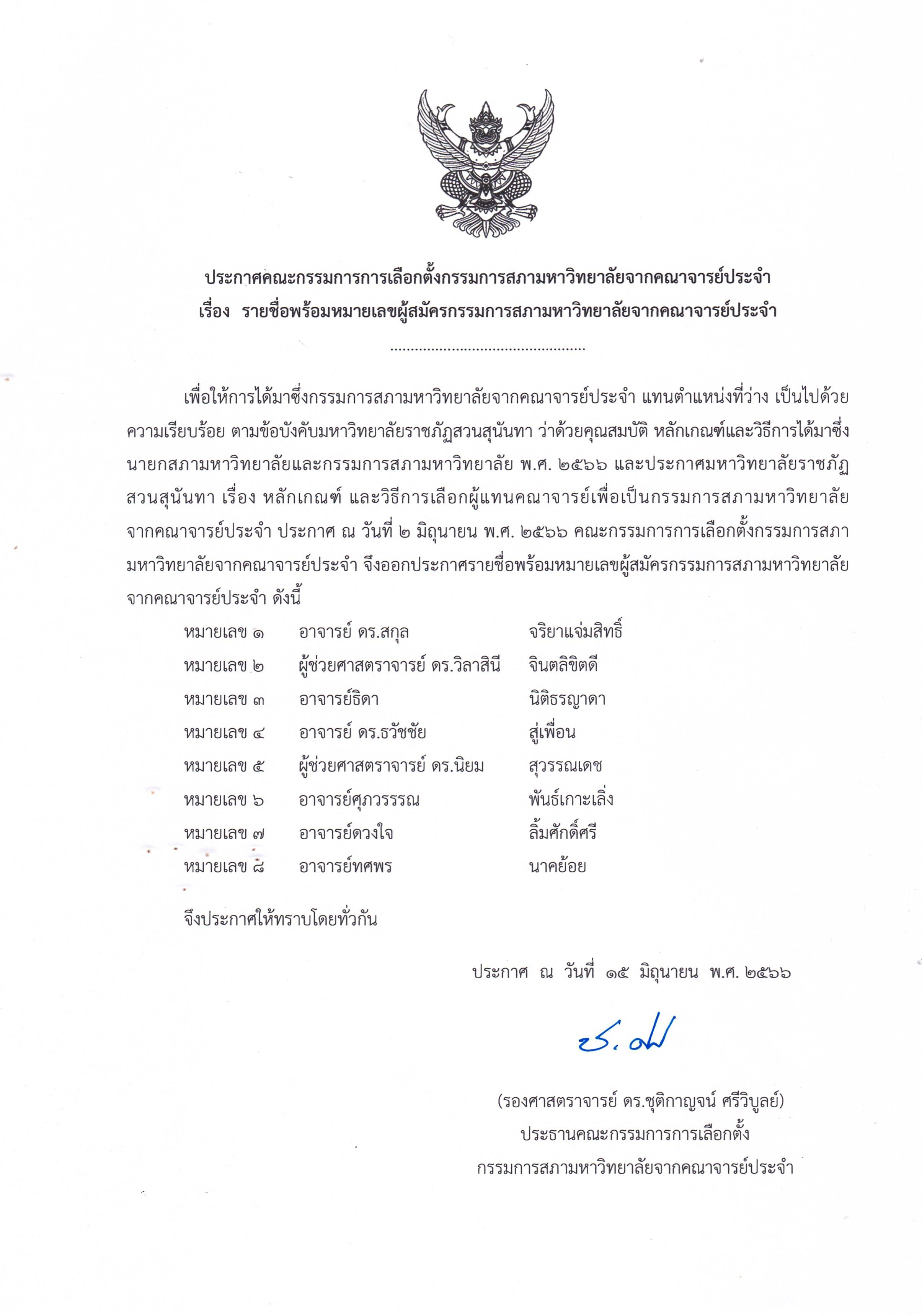 รายชื่อผู้มีสิทธิ์ลงคะแนนเลือกตั้งกรรมการสภามหาวิทยาลัยจากคณาจารย์ประจำ