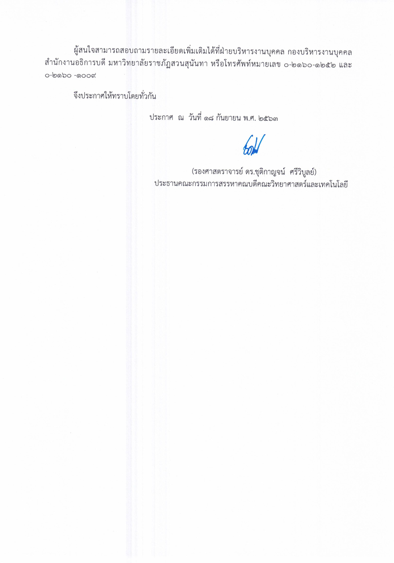 "คณบดีคณะวิทยาศาสตร์และเทคโนโลยี"