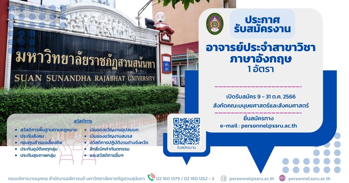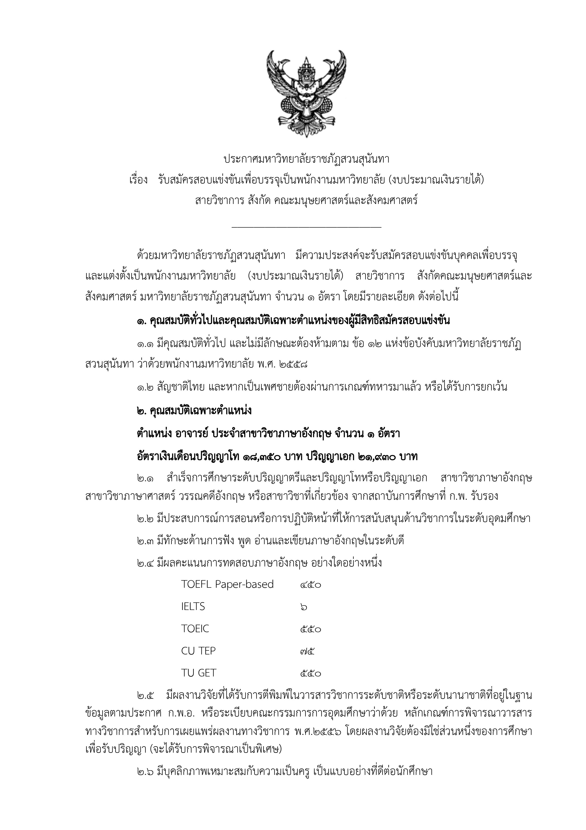 อาจารย์ประจำสาขาวิชาภาษาอังกฤษ 1 อัตรา