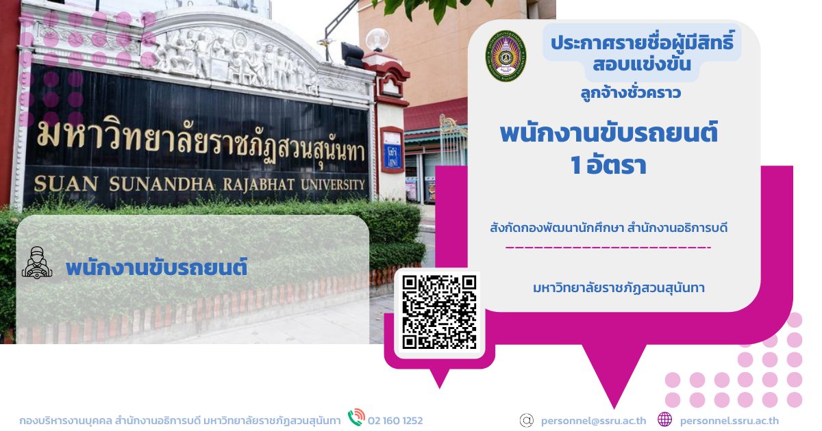 ประกาศรายชื่อผู้มีสิทธิ์สอบแข่งขันลูกจ้างชั่วคราว ตำแหน่ง พนักงานขับรถยนต์ 1 อัตรา สังกัดกองพัฒนานักศึกษา