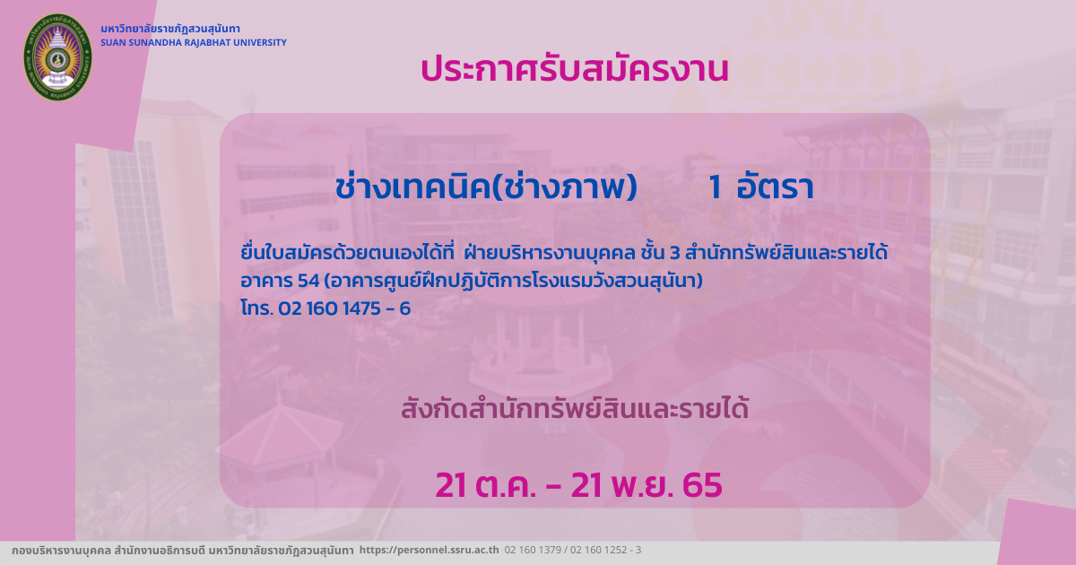 ประกาศรับสมัคร ช่างเทคนิค(ช่างภาพ) 1 อัตรา ตั้งแต่วันที่ 21 ต.ค. - 21 พ.ย.65 สังกัดสำนักทรัพย์สินและรายได้.pdf