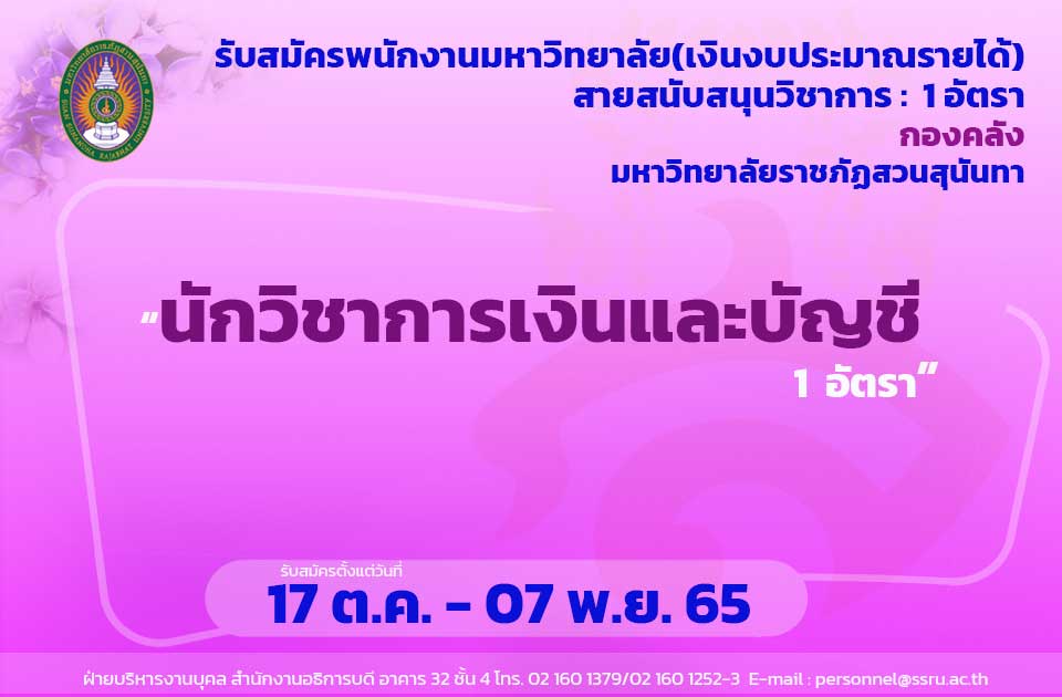 ประกาศรับสมัคร ตำแหน่ง นักวิชาการเงินและบัญชี 1 อัตรา ตั้งแต่วันที่ 17 ต.ค. - 7 พ.ย.65 สังกัดกองคลัง.pdf