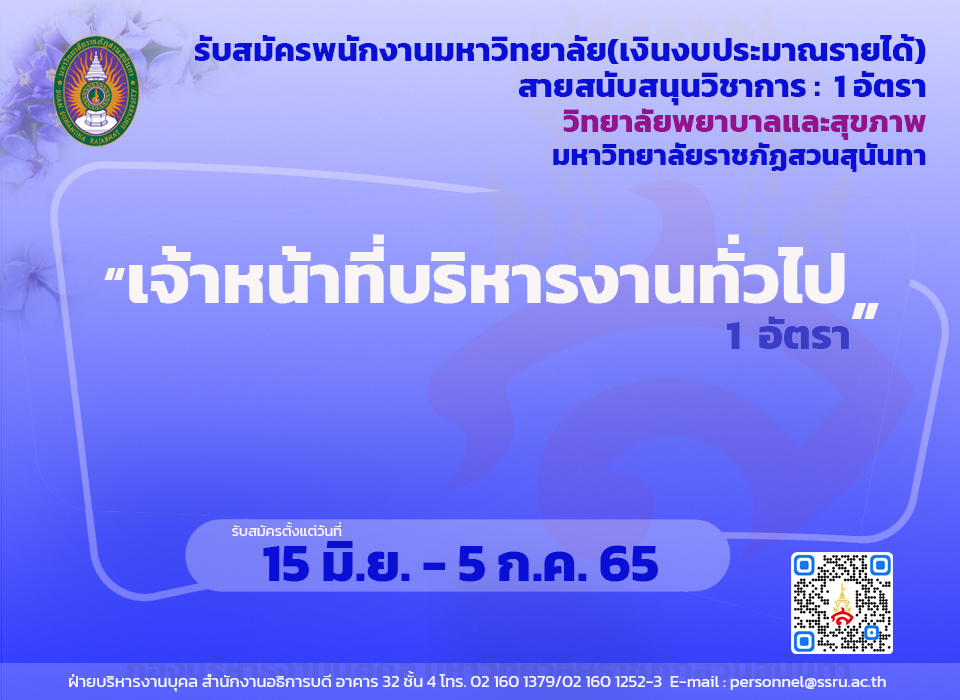 ประกาศรับสมัคร เจ้าหน้าที่บริหารงานทั่วไป 1 อัตรา ตั้งแต่วันที่ 15 มิ.ย - 5 ก.ค. 65 สังกัดวิทยาลัยพยาบาลและสุขภาพ.pdf
