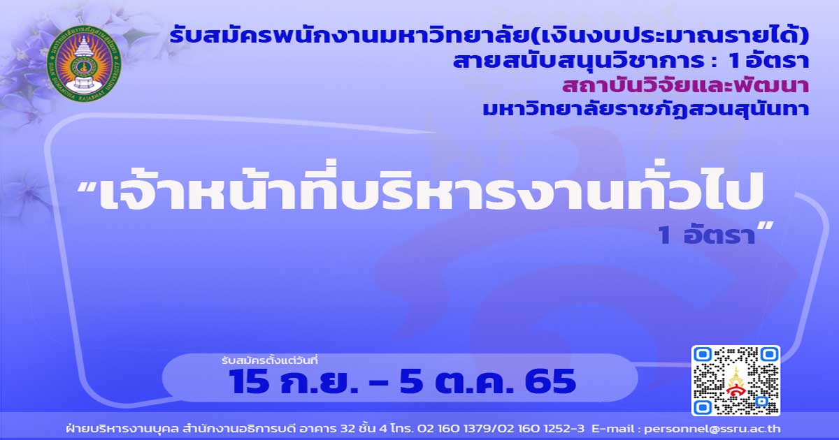 ประกาศรับสมัคร เจ้าหน้าที่บริหารงานทั่วไป 1 อัตรา ตั้งแต่วันที่ 15 ก.ย. - 5 ต.ค. 65 สังกัดสถาบันวิจัยและพัฒนา.pdf