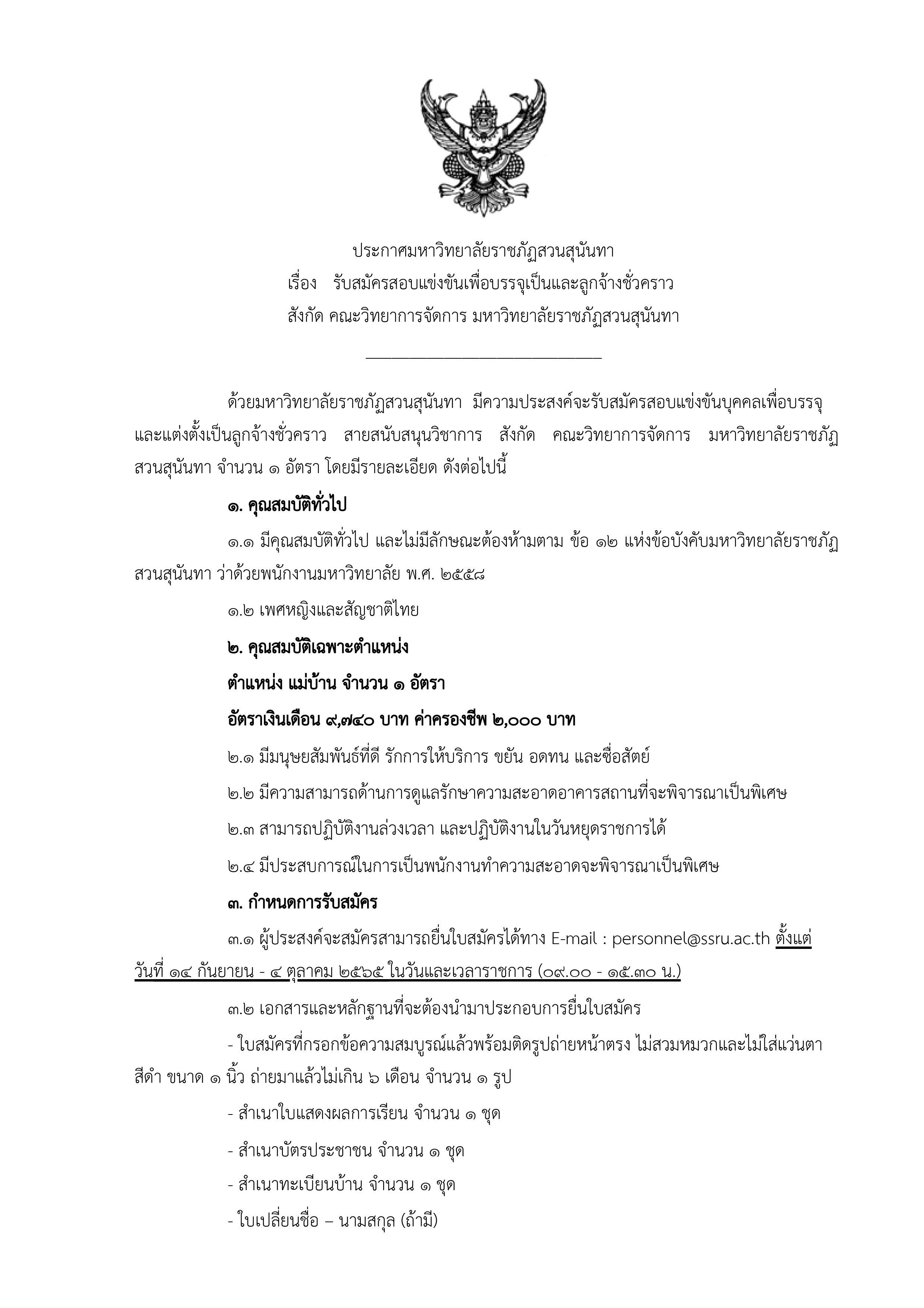 ประกาศรับสมัคร แม่บ้าน 1 อัตรา ตั้งแต่วันที่ 14 ก.ย. - 4 ต.ค.65 สังกัดคณะวิทยาการจัดการ.pdf
