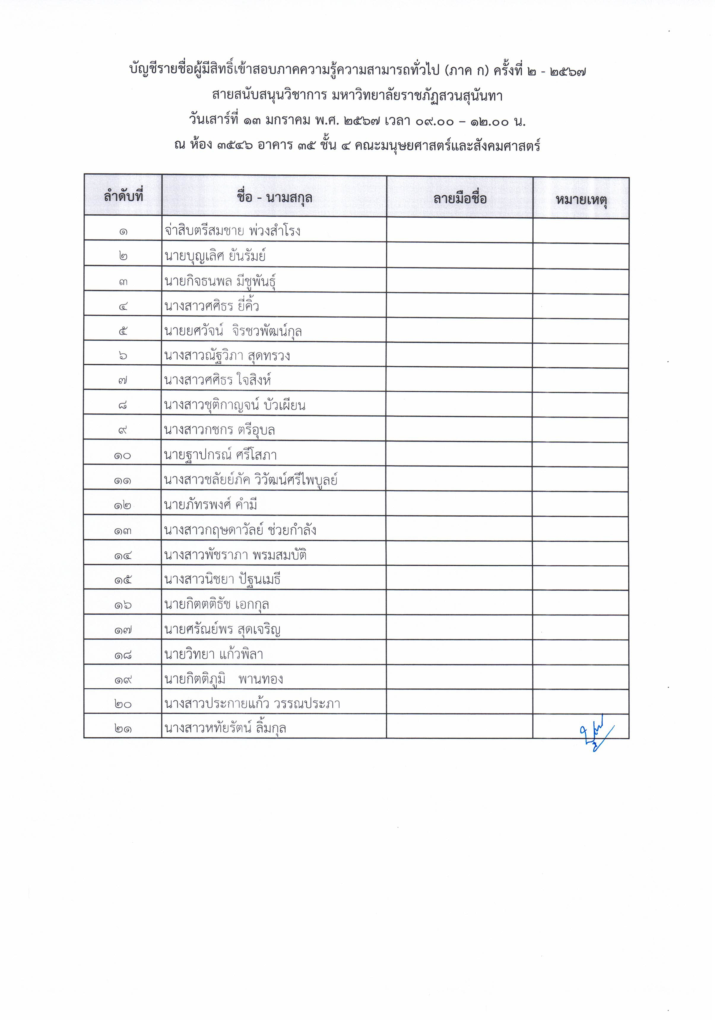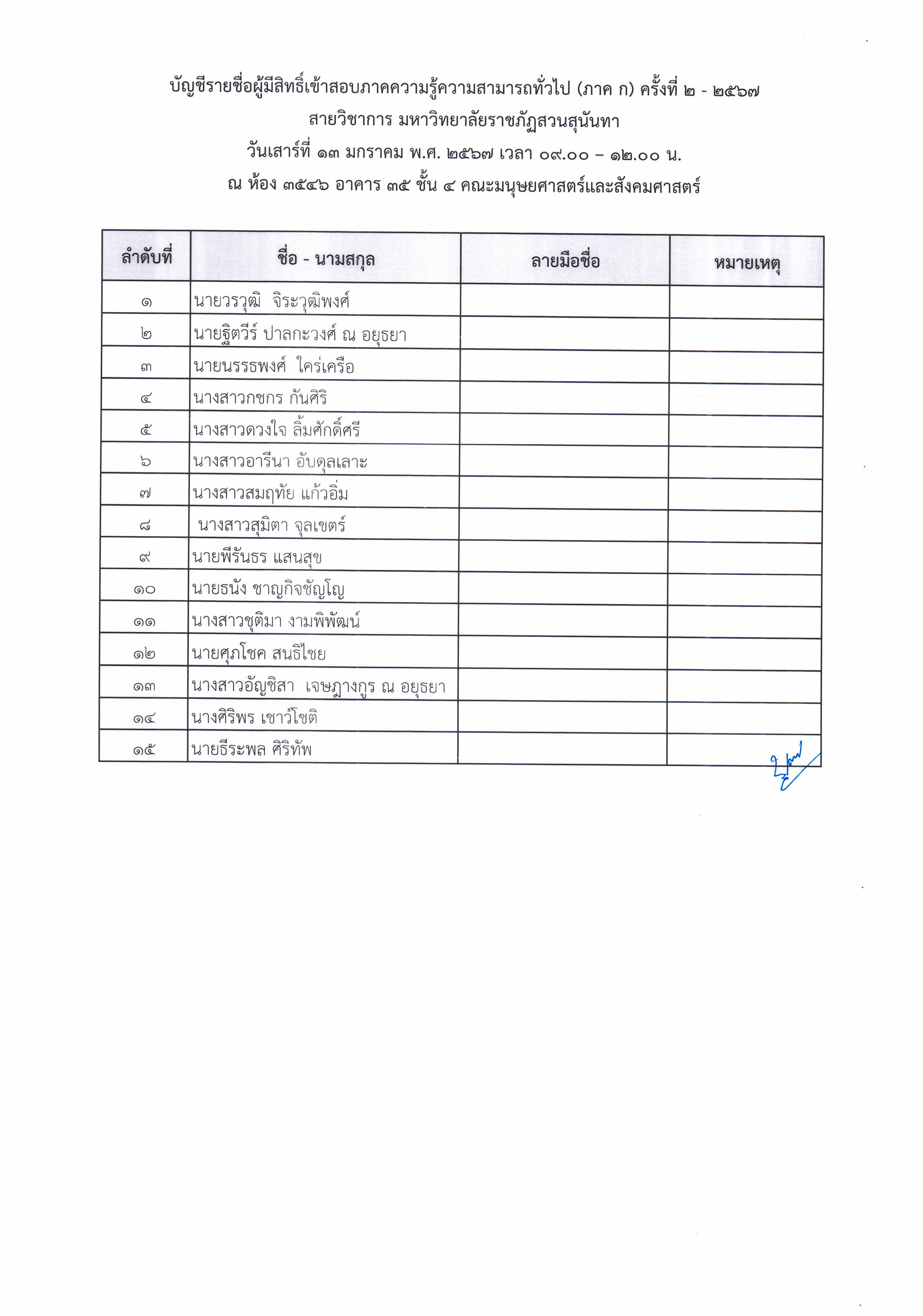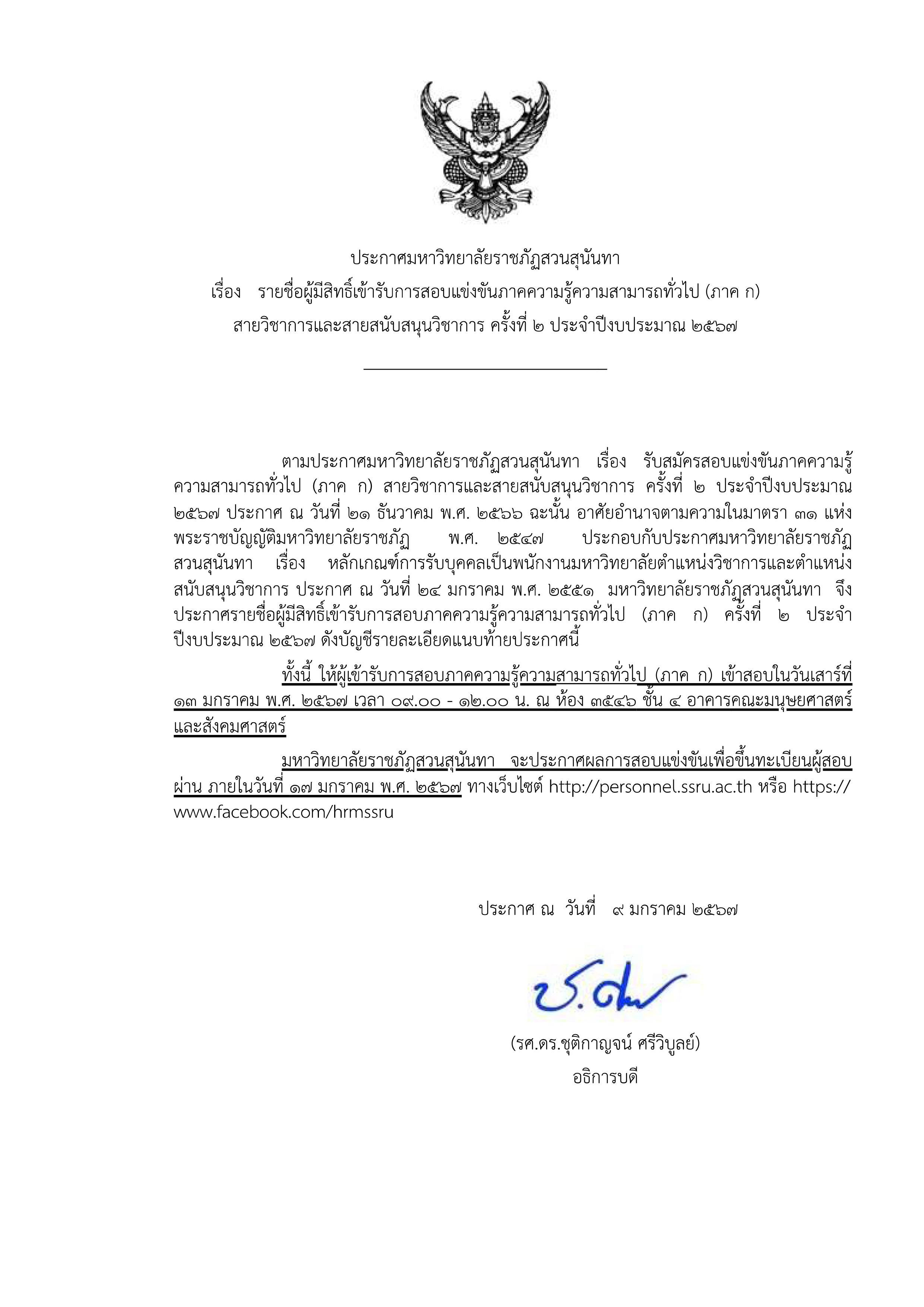 ประกาศรายชื่อผู้มีสิทธิ์สอบแข่งขัน