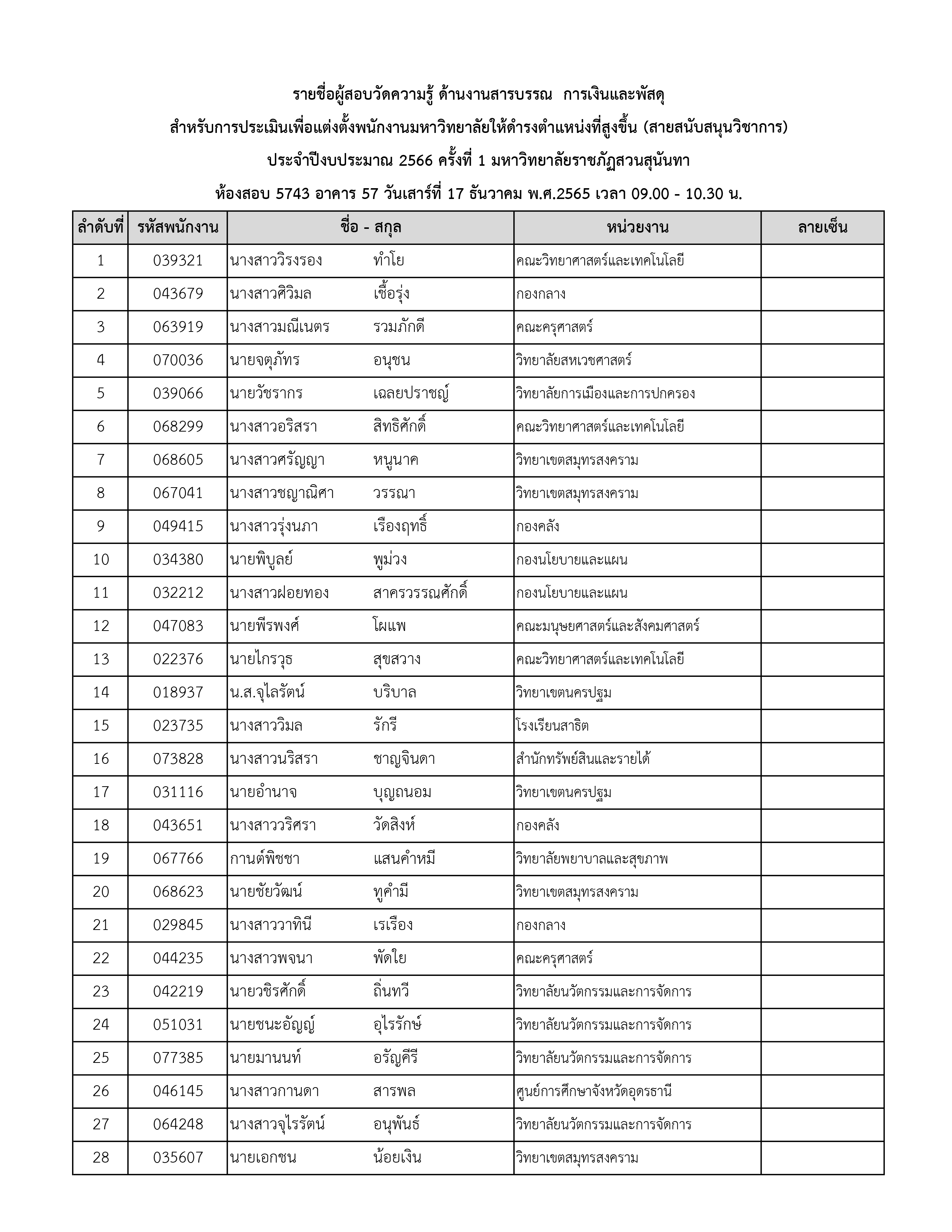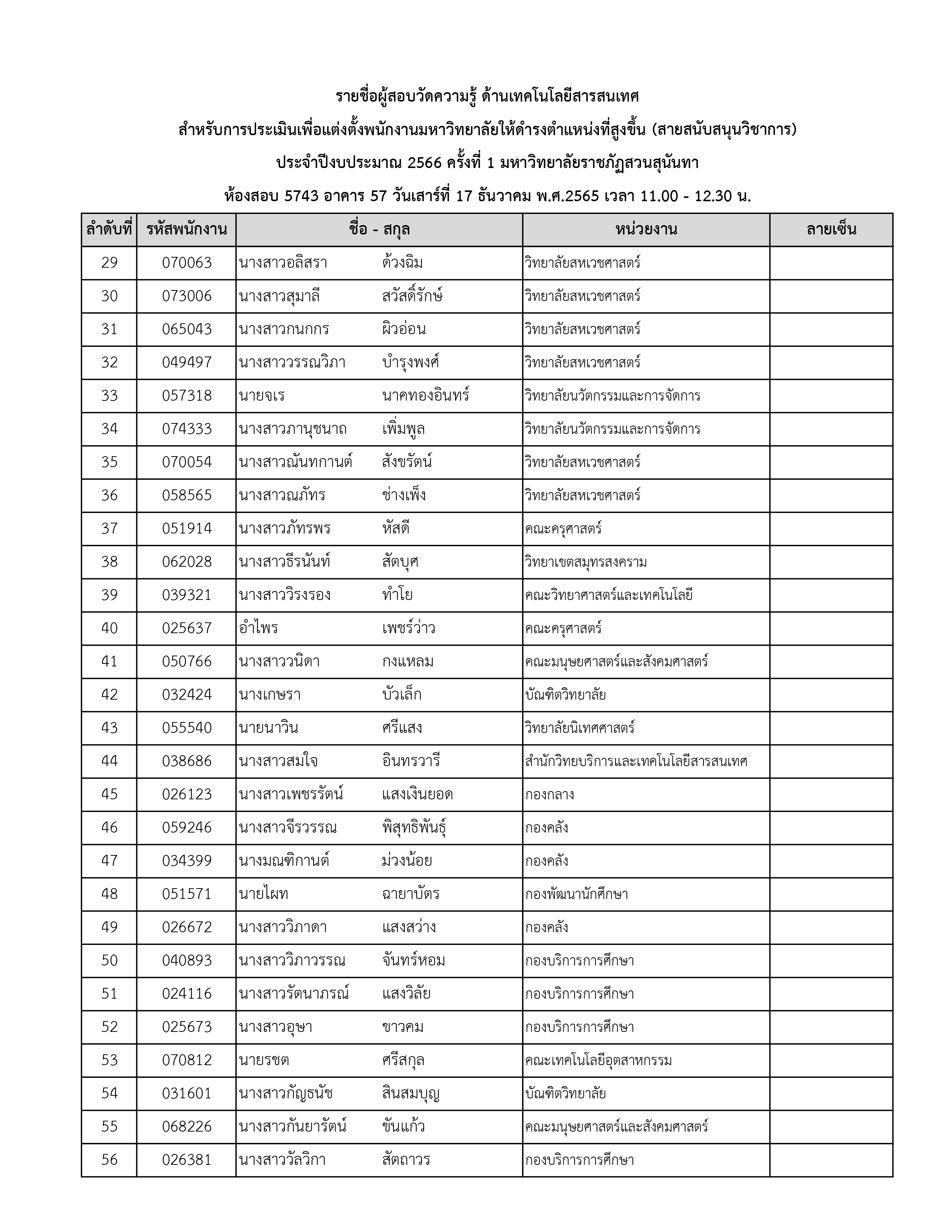 ด้านงานสารบรรณ  การเงิน และพัสดุ สอบวันเสาร์ที่ 17 ธ.ค. 65 เวลา 09.00 - 10.30 น. ห้องสอบ 5743 อาคาร 57 ชั้น 4.pdf เลขที่ 1 - 66