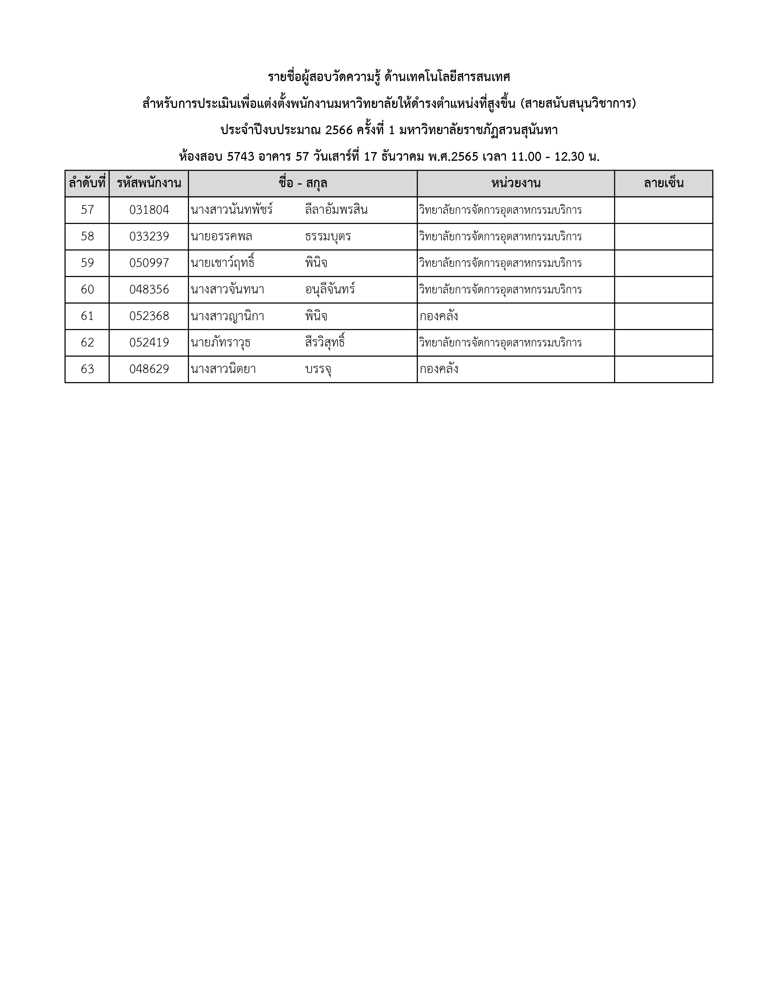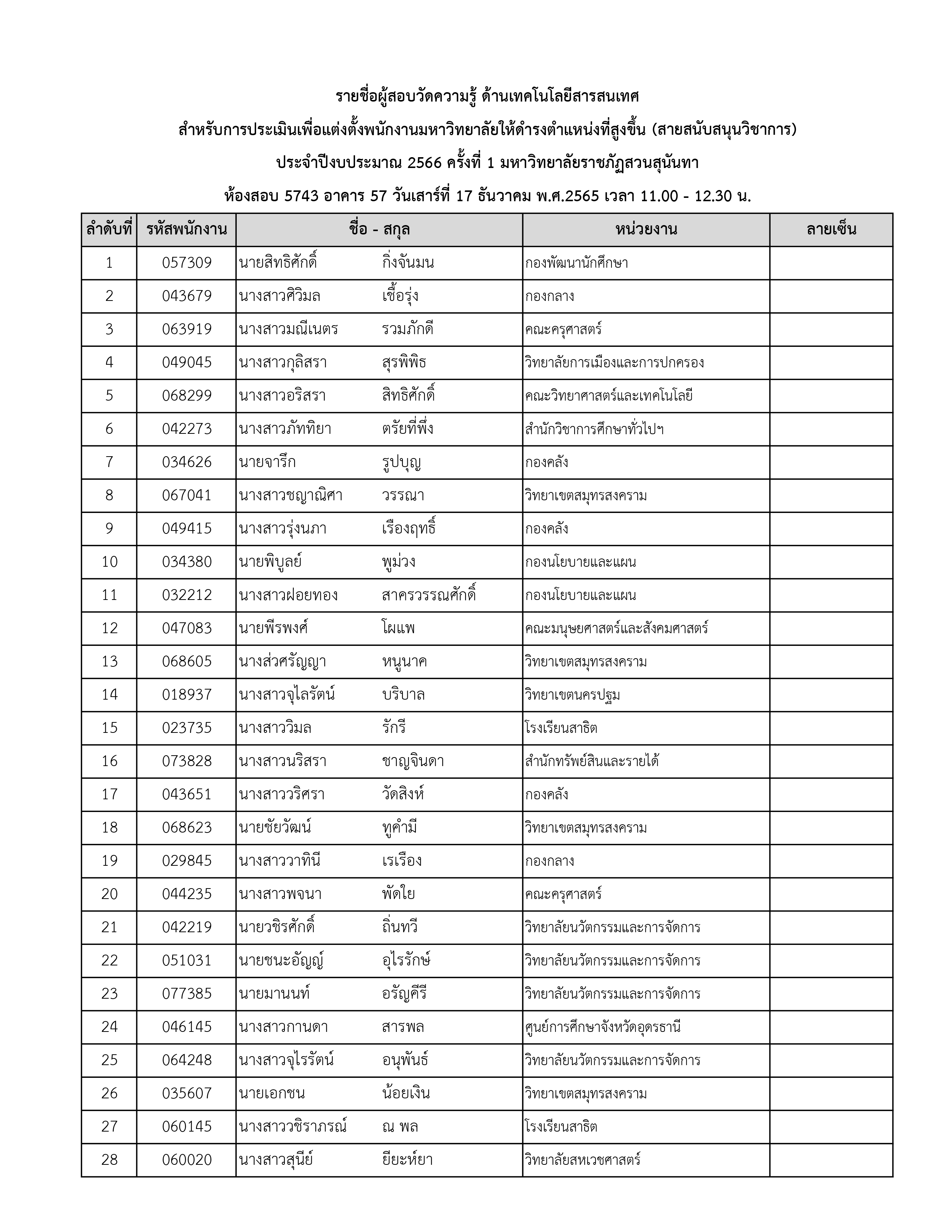 ประกาศรายชื่อผู้เข้าสอบวัดความรู้ ความสามารถ ทักษะและสมรรถะทางการบริหาร สำหรับการประเมินเพื่อแต่งตั้งพนักงานมหาวิทยาลัยให้ดำรงตำแหน่งที่สูงขึ้น (สายสนับสนุนวิชาการ) ปีงบประมาณ 2566