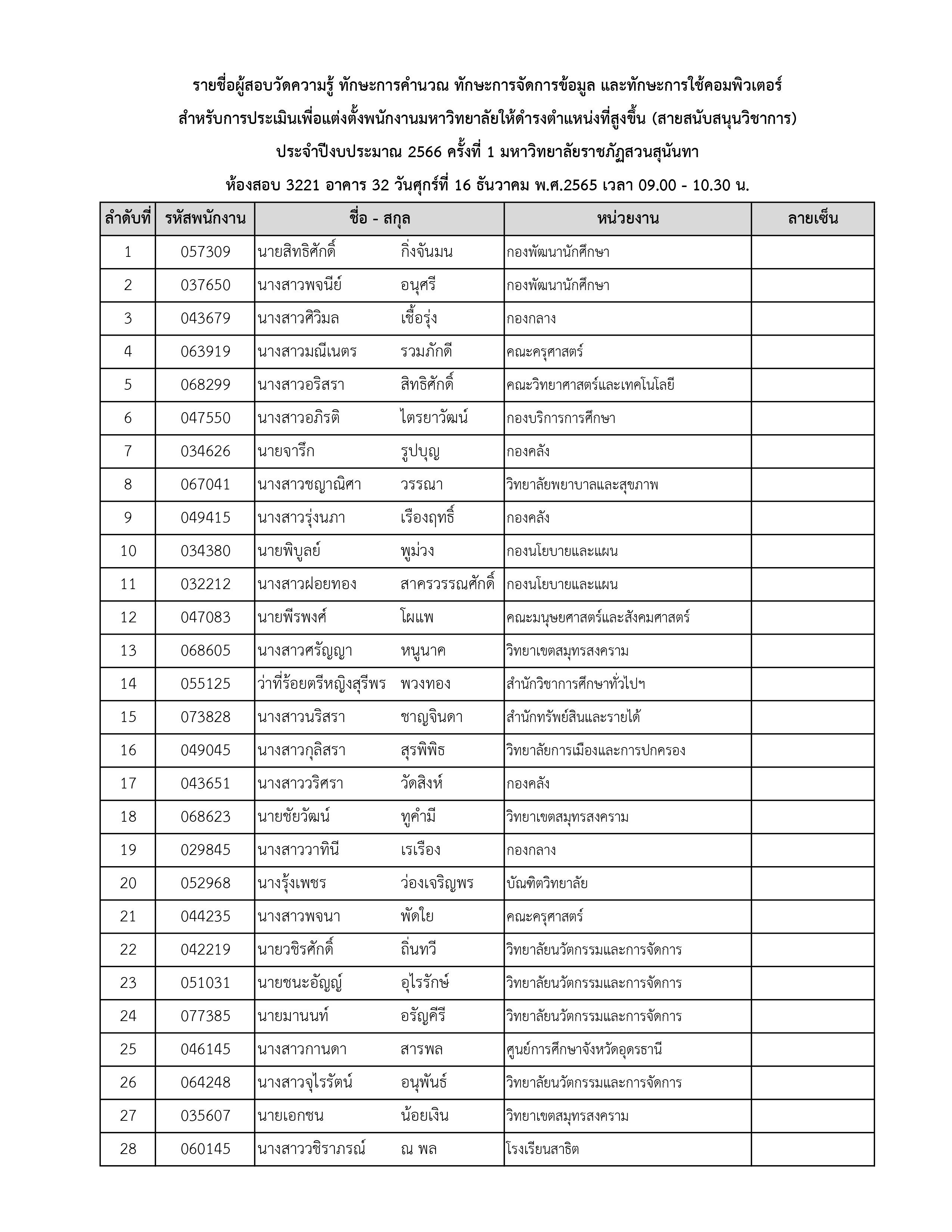 ทักษะการคำนวณ ทักษะการจัดการข้อมูล และทักษะการใช้คอมพิวเตอร์  สอบวันศุกร์วันที่ 16 ธ.ค.65 เวลา 09.00 – 10.30 น.  ห้องสอบ 3221 อาคาร 32 ชั้น 2 (ศูนย์วิทยบริการ).pdf เลขที่ 1 - 68