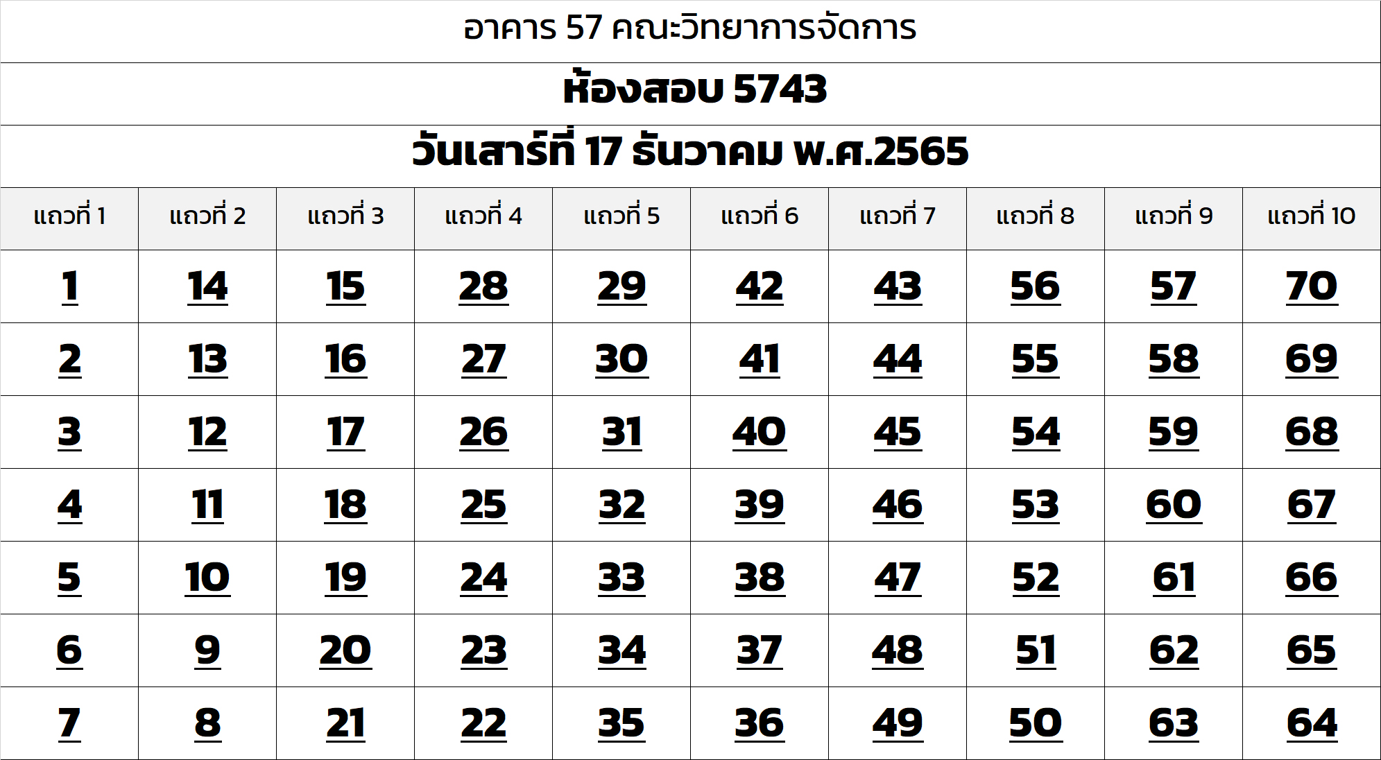 สอบวันเสาร์ที่ 17 ธ.ค. 65 เวลา 09.00 - 10.30 น. ห้องสอบ 5743 อาคาร 57 ชั้น 4.pdf เลขที่ 1 - 66