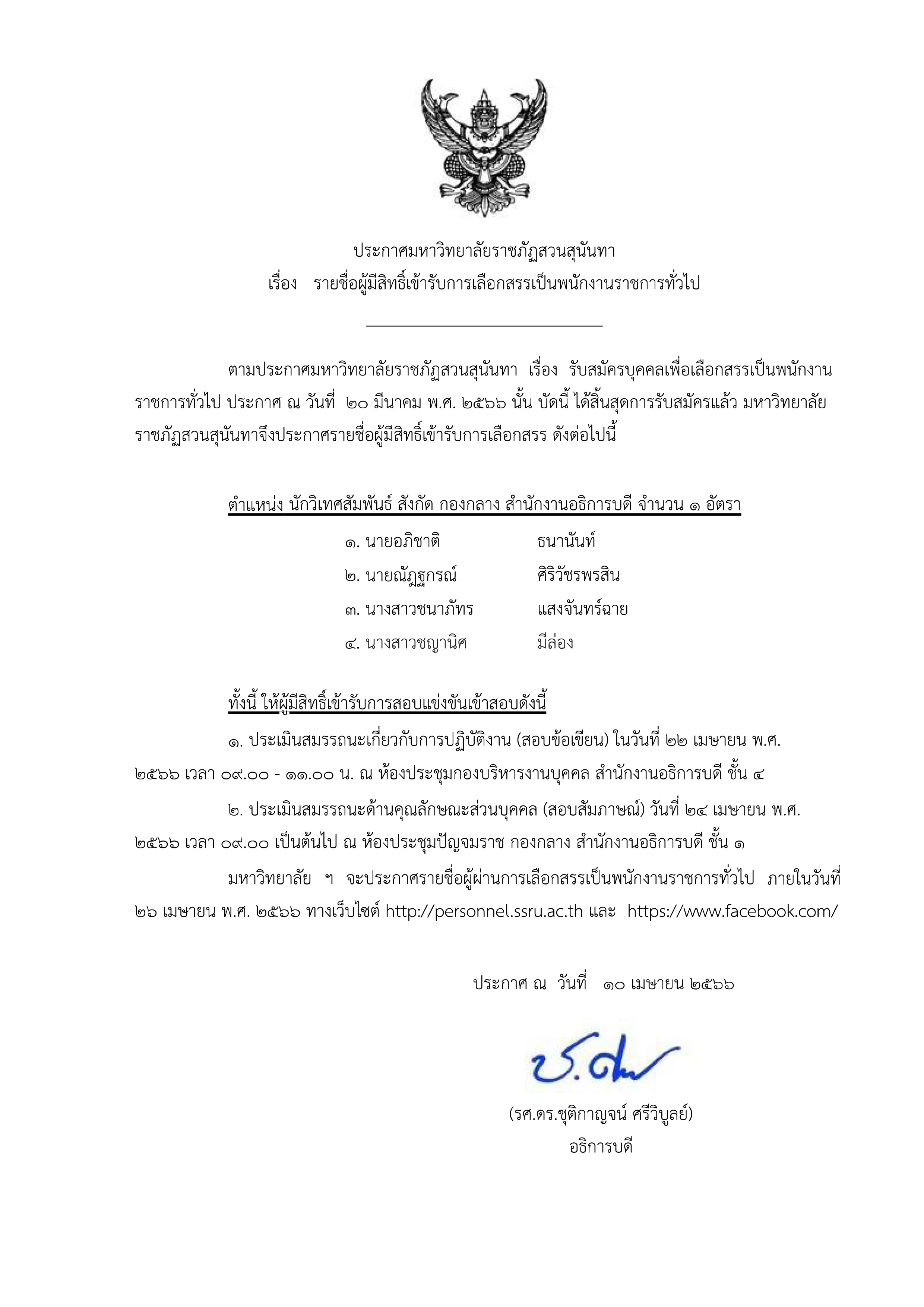 ประกาศรายชื่อผู้มีสิทธิ์สอบแข่งขัน พนักงานราชการทั่วไป ตำแหน่ง นักวิเทศสัมพันธ์ 1 อัตรา สังกัดกองกลาง สำนักงานอธิการบดี.pdf