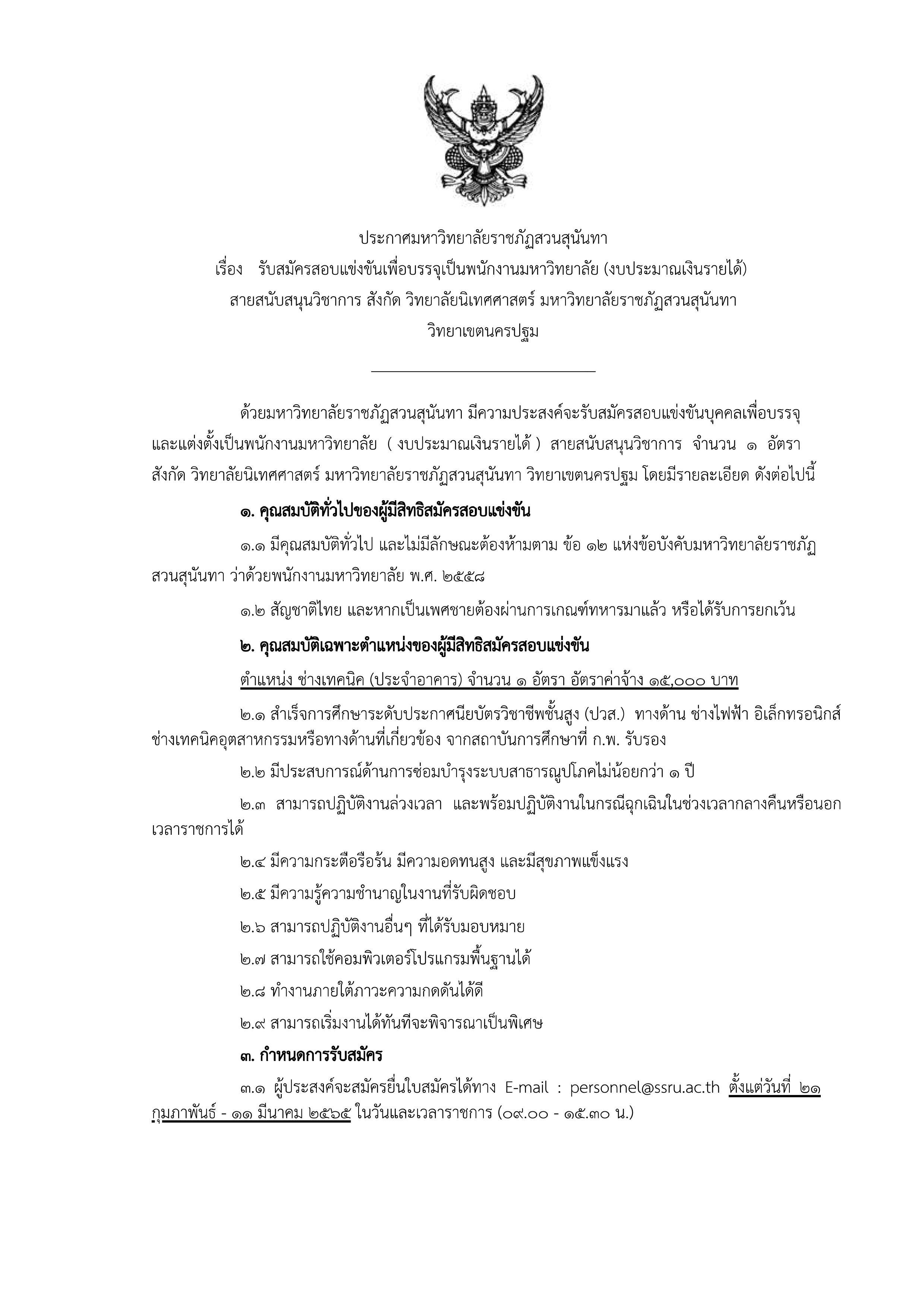 ช่างเทคนิค (ประจำอาคาร) 1 อัตรา