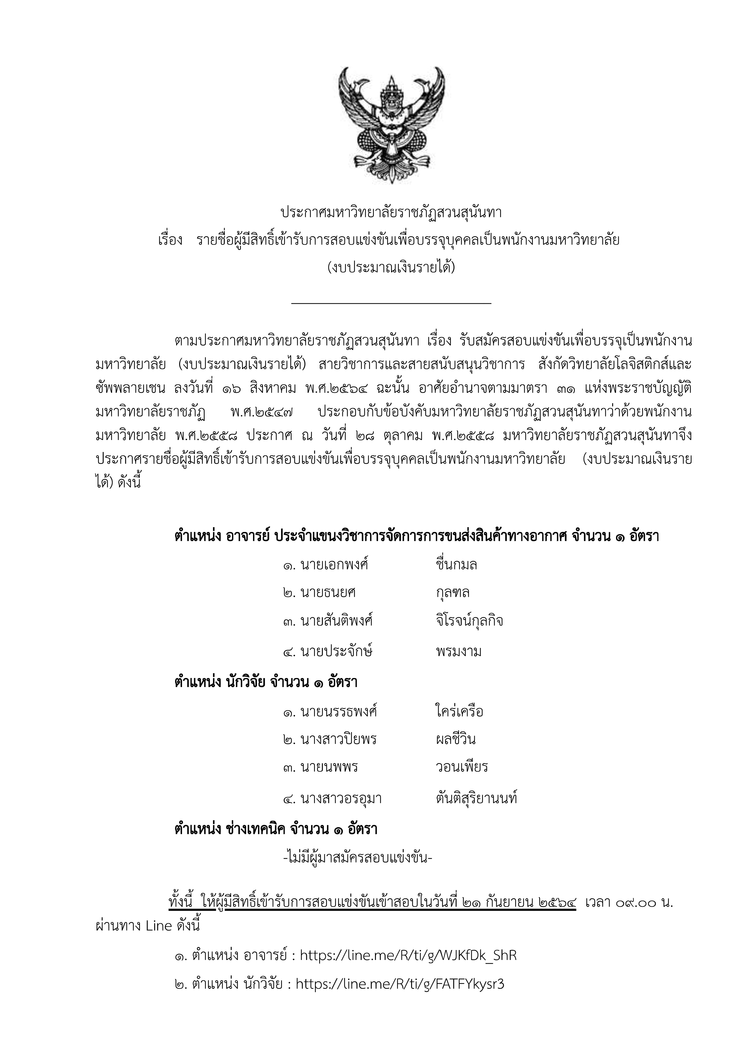 ตำแหน่ง : อาจารย์ประจำแขนงวิชาการจัดการการขนส่งสินค้าทางอากาศ 1 อัตรา
