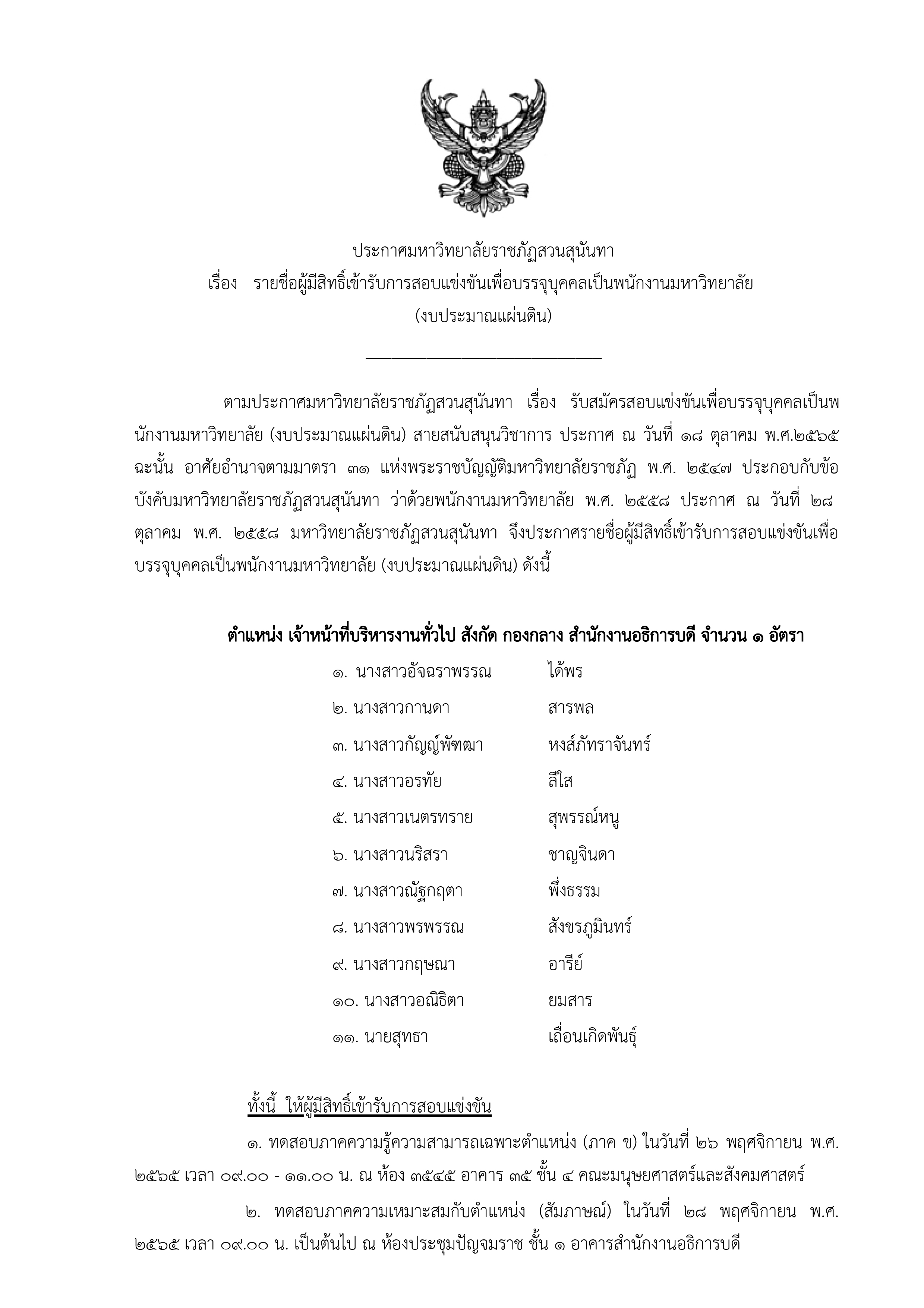 ประกาศรายชื่อผู้สอบแข่งขันเพื่อบรรจุเป็นพนักงานมหาวิทยาลัย(เงินงบประมาณแผ่นดิน)