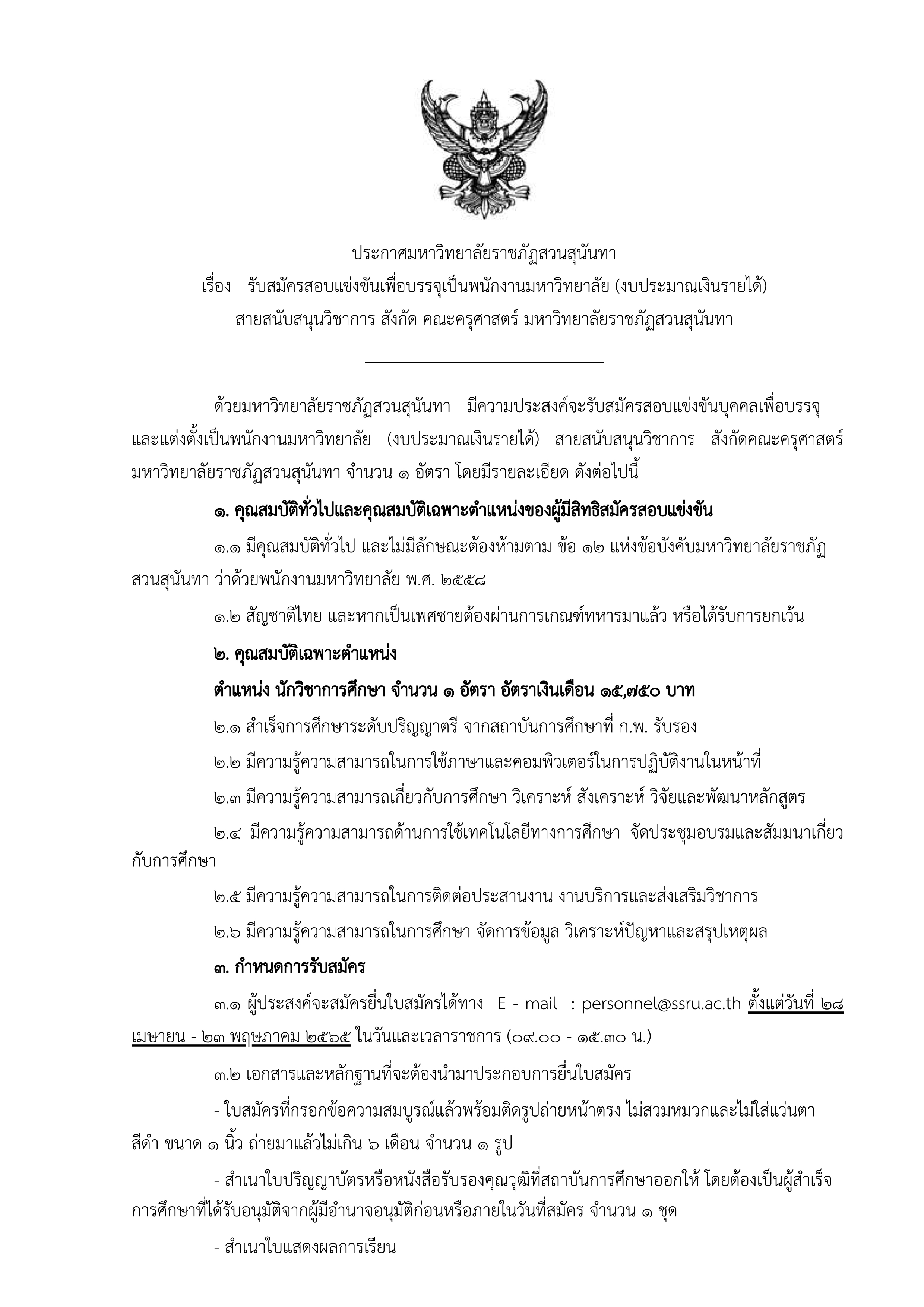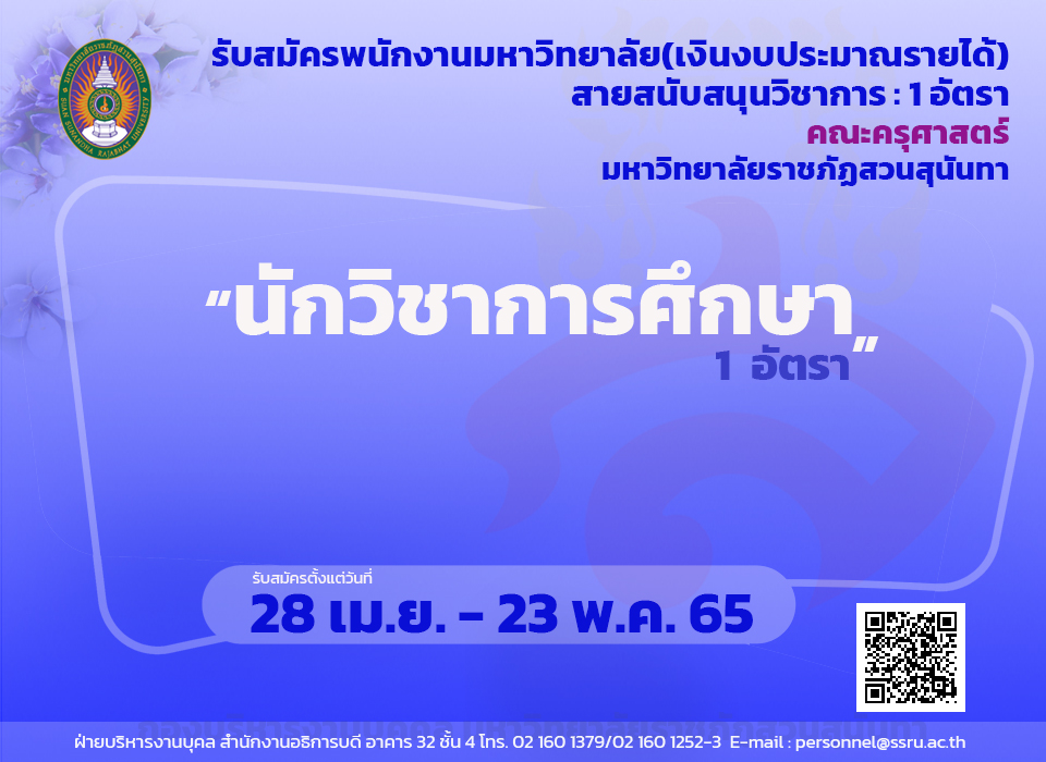 ประกาศรับสมัคร นักวิชาการศึกษา 1 อัตรา ตั้งแต่วันที่ 28 เม.ย. - 23 พ.ค.65 สังกัดคณะครุศาสตร์.pdf