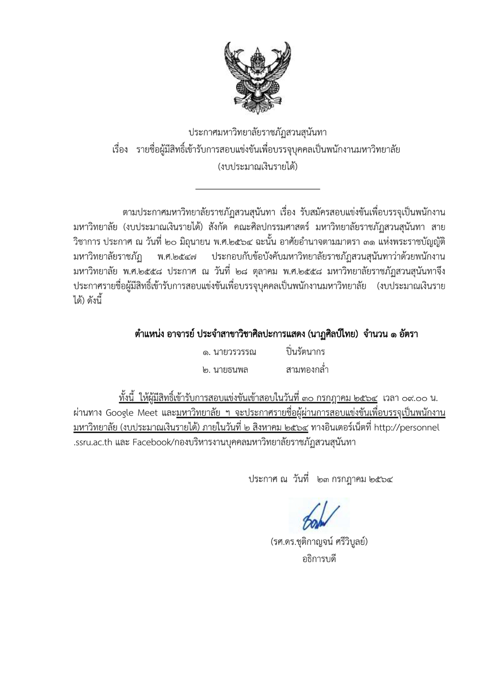 ประกาศรายชื่อผู้มีสิทธิ์สอบแข่งขันตำแหน่ง อาจารย์ประจำสาขาวิชาศิลปะการแสดง (นาฎศิลป์ไทย) 1 อัตรา สังกัดคณะศิลปกรรมศาสตร์.pdf