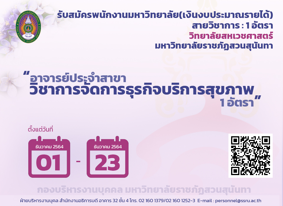 1 อัตรา ตั้งแต่วันที่ 1 - 23 ธ.ค.64