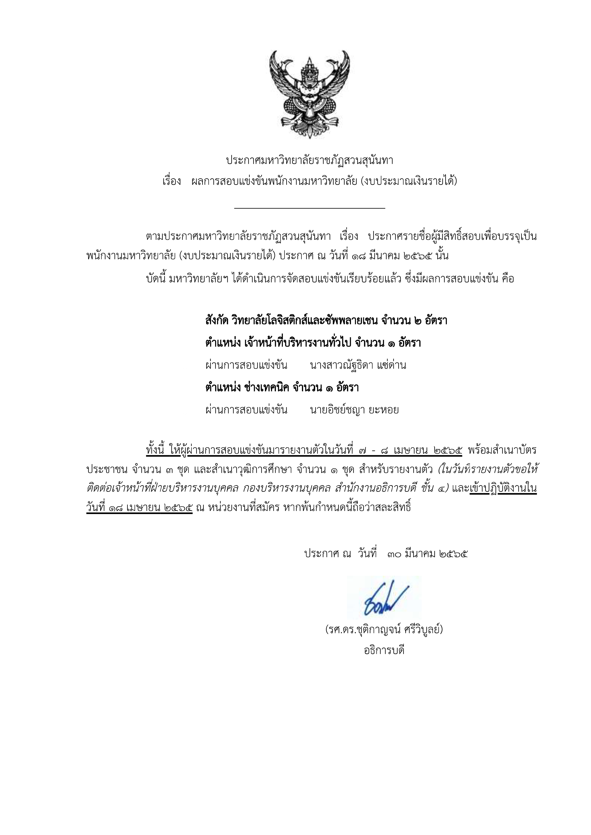 ประกาศผลการรับสมัคร เจ้าหน้าที่บริหารงานทั่วไป 1 อัตรา และช่างเทคนิค 1 อัตรา สังกัดวิทยาลัยโลจิสติกส์และซัพพลายเชน.pdf
